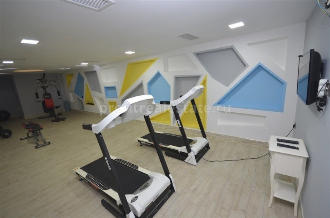 Апартаменты находятся на втором этаже и и являются частью жилого комплекса, который был построен в 2017 году и отличается богатой инфраструктурой. Здесь, к услугам жильцов, расположен бассейн с водной горкой и оборудованный всем необходимым, в том числе, шезлонгами и зонтиками. А если вы захотите расслабиться – для вас всегда открыты двери сауны, хамама и джакузи. Любители активного отдыха по достоинству оценят прекрасно оснащенный фитнес зал, а детвора сможет выплеснуть свою энергию на игровой площадке. Кроме того, на территории комплекса разбит ландшафтный сад и предусмотрена автомобильная парковка. Резиденция находится под круглосуточной охраной, а за порядком следит управляющий. Стоимость ежемесячного обслуживания составит 150 лир.