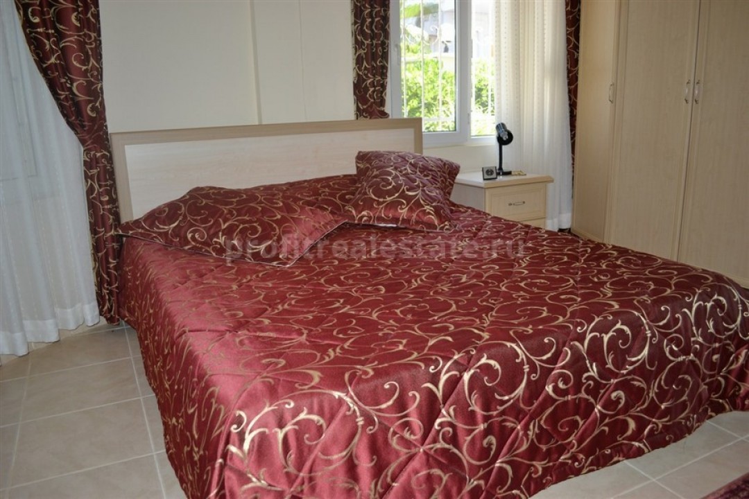 Жилое помещение виллы состоит из двух уровней и имеет планировку 3+1, включающую в себя три спальные комнаты, один салон, совмещенный с кухней и оборудованный камином, три ванные комнаты, оснащенные душевыми кабинками, два балкона и террасу, с которых открывается вид на море, историческую крепость Аланьи и горы. Отметим, вилла полностью меблирована элегантной мебелью и укомплектована всей необходимой бытовой техникой, отвечающей требованиям современного комфорта. Все это входит в общую стоимость и делает предложение весьма привлекательным, избавляя вас от лишних хлопот и денежных трат.