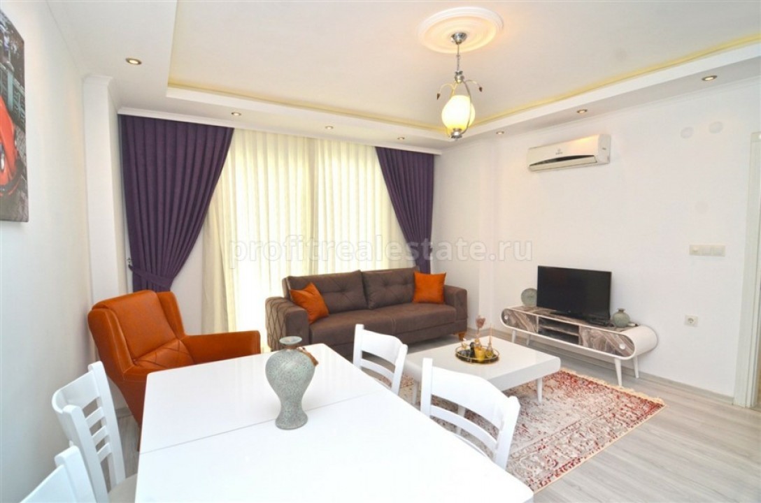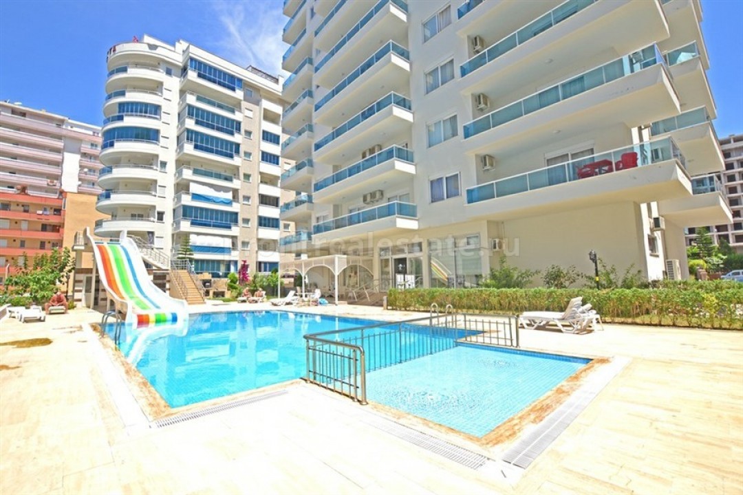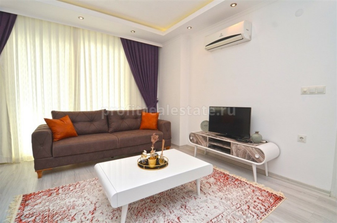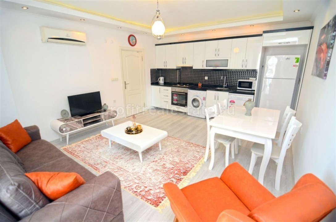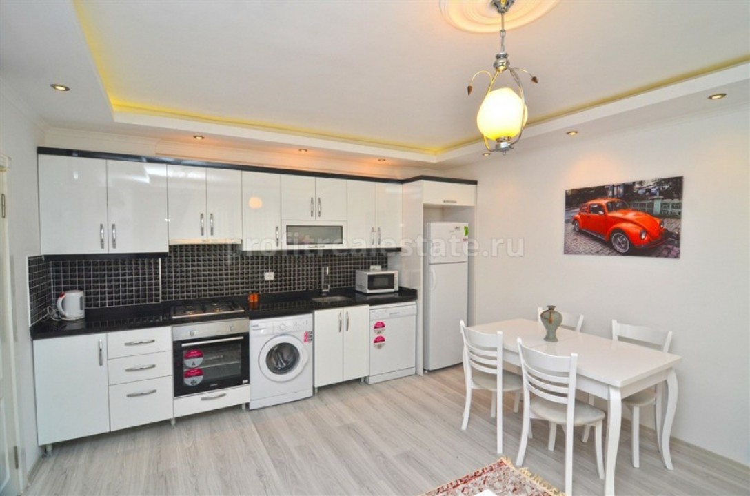 В популярном районе Алании Махмутлар всего в 350 метрах от моря на продажу выставлена уютная двухкомнатная квартира общей площадью 70 м2. В квартире две комнаты, одна из которых спальня, а вторая - кухня открытого типа, совмещенная с гостиной, ванная комната и балкон. В квартире есть полный пакет новой мебели современной техники, которая уже включена в стоимость. Это большой плюс, потому что сразу после покупки предлагаемых апартаментов вы сможете заселиться в них или же выгодно сдать в аренду квартиру в Махмутларе.