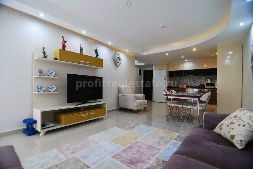 Предлагаем вашему вниманию просторную трёхкомнатную квартиру в современном комплексе с развитой отельной инфраструктурой. На территории комплекса есть два больших бассейна, один из которых оборудован горками, а другой имеет свой собственный бар прямо в воде. Также для вашего комфортного и разнообразного отдыха на территории комплекса расположился теннисный корт, парк, маркет, детская площадка и многое другое. Тут же есть крытый бассейн с подогревом, сауна, фитнес центр, хамам, массажные кабинеты, словом, инфраструктуре позавидует даже пятизвёздочный отель. Стоимость ежемесячного обслуживания составляет 60 евро. Расстояние до моря 650 метров. Рядом есть вся инфраструктура района Алании Махмутлар.