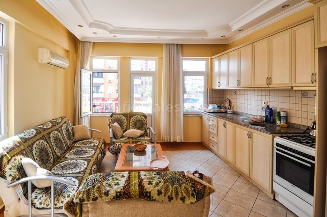 В курортном и очень популярном районе Алании Махмутлар на продажу от собственника выставлена просторная четырехкомнатная квартира общей площадью 110 м2. Апартаменты расположены на первом высоком этаже пятиэтажного дома 2006 года постройки. Планировка квартиры 3+1 предполагает наличие трех отдельных спальных комнат, кухни открытого американского типа, которая совмещена с гостиной, двух ванных комнат и двух балконов, из которых открывается очень красивый вид на оживленную улицу.