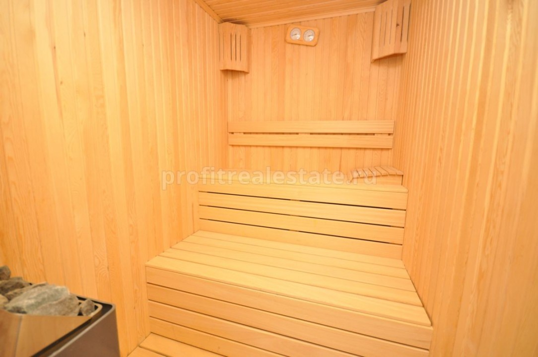 Предлагаем вашему вниманию новое предложение, - пентхаус в Алании, район Махмутлар. Пентхаус имеет планировку 3+1 и общую площадь 185 м кв. Расположился пентхаус на восьмом этаже, из окон и балконов пентхауса вы сможете наслаждаться прекрасным и открытом видом на Средиземное море и горы Торос. Квартира ориентирована на северо-восток. Квартира расположилась на двух этажах и представляет собой перевернутый дуплекс. На первом этаже находятся спальни, а на втором этаже расположилась огромная гостиная, которая совмещена с кухней американского типа. По всему периметру квартиру проходит огромная терраса, которую можно благоустроить по Вашему желанию. В квартира есть три спальни, три ванные комнаты, а также своя собственная сауна. Продается квартира с полной чистовой отделкой высокого качества, так как строительство вела одна из самых надежных и крупных компаний Алании.