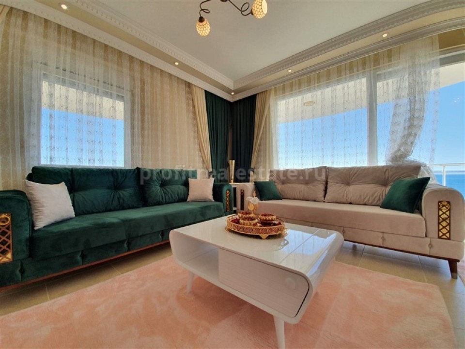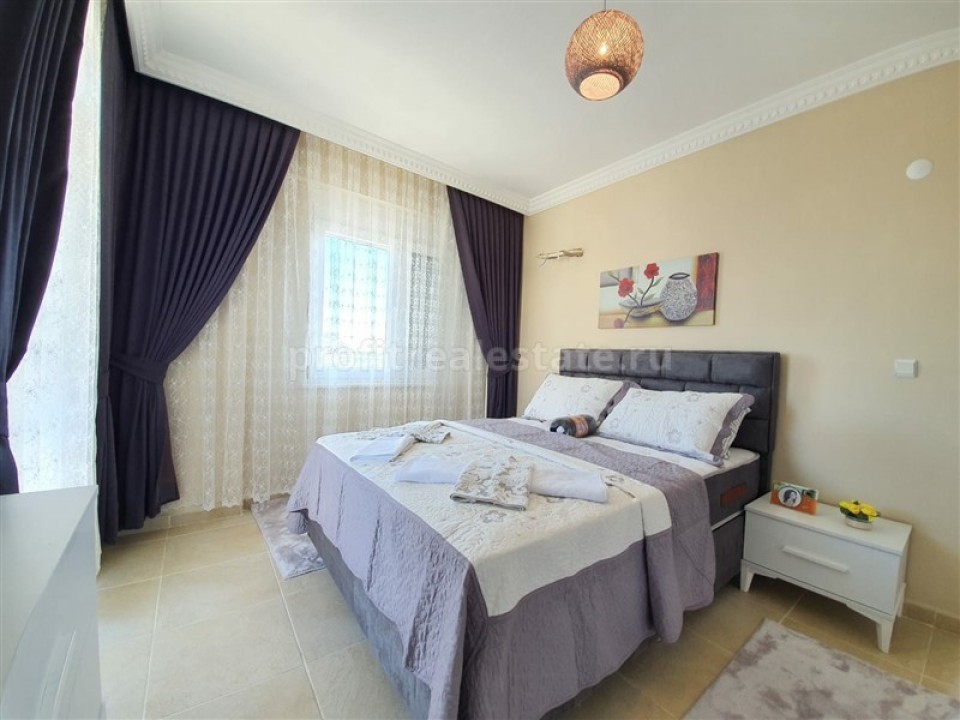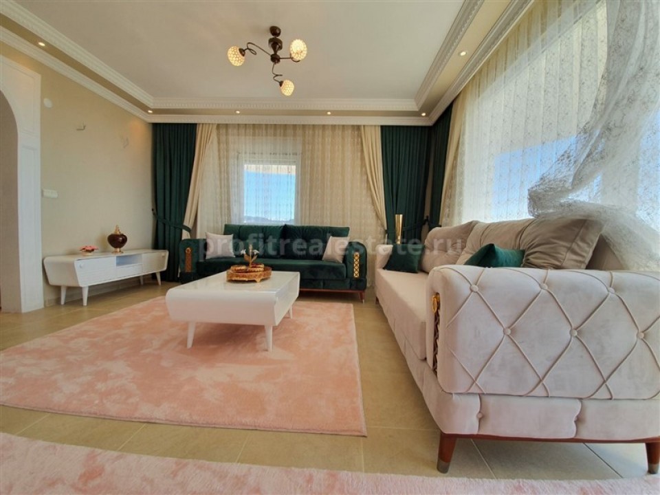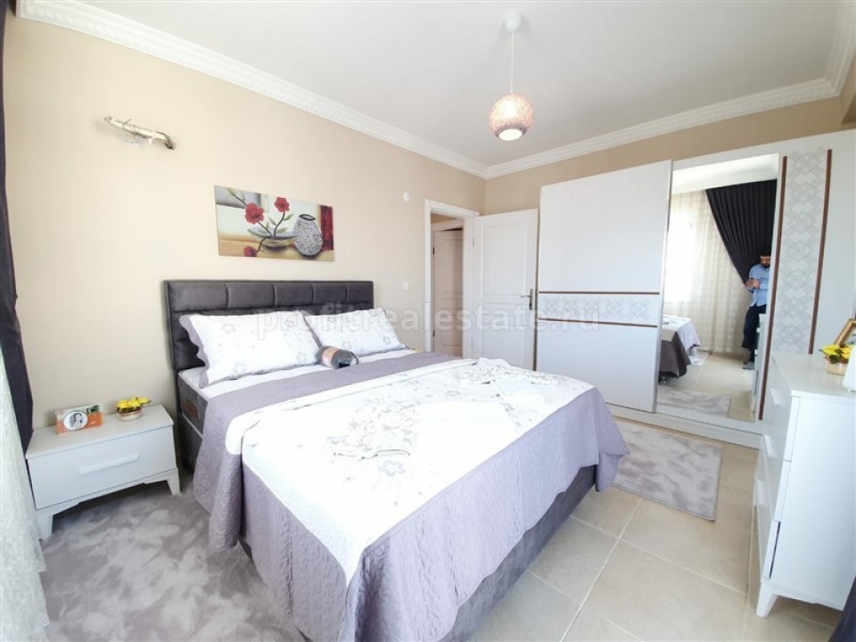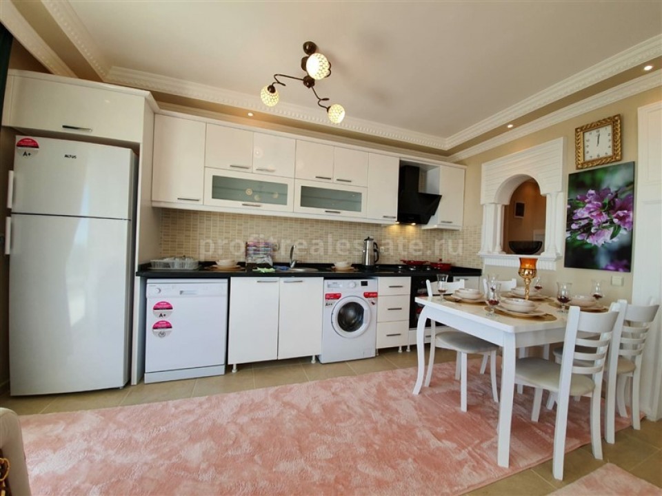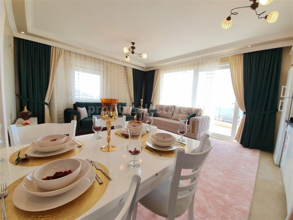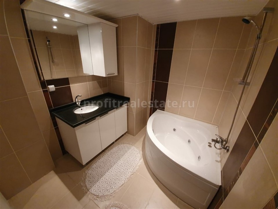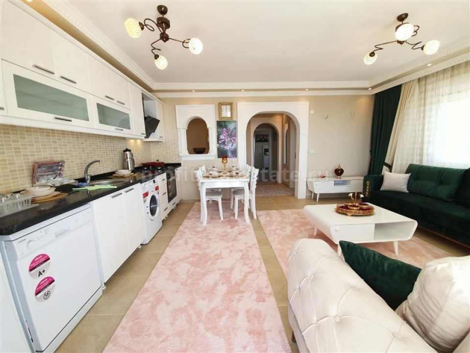 Мечтаете о квартире у моря? Тогда обратите внимание на наше новое предложение! В популярном районе Аланьи Махмутларе, всего в 150 метрах от пляжа, продается шикарная трехкомнатная квартира, общей площадью 120 кв. метров. Апартаменты обладают планировкой 2+1, которая включает в себя: две спальные комнаты; салон, совмещенный с кухней открытого типа, и разделенный на столовую зону и зону отдыха; ванную комнату, оснащенную джакузи; два больших балкона с колонами, с которых открываются завораживающие виды на море, город и городскую инфраструктуру. Хотелось бы отметить великолепный интерьер, а также, продуманную эргономику, которая создает повышенный комфорт проживания. Кроме того, квартира оборудована элегантной мебелью и современной бытовой техникой. Все это входит в полную стоимость и делает предложение очень выгодным, так как экономит ваши средства и время.