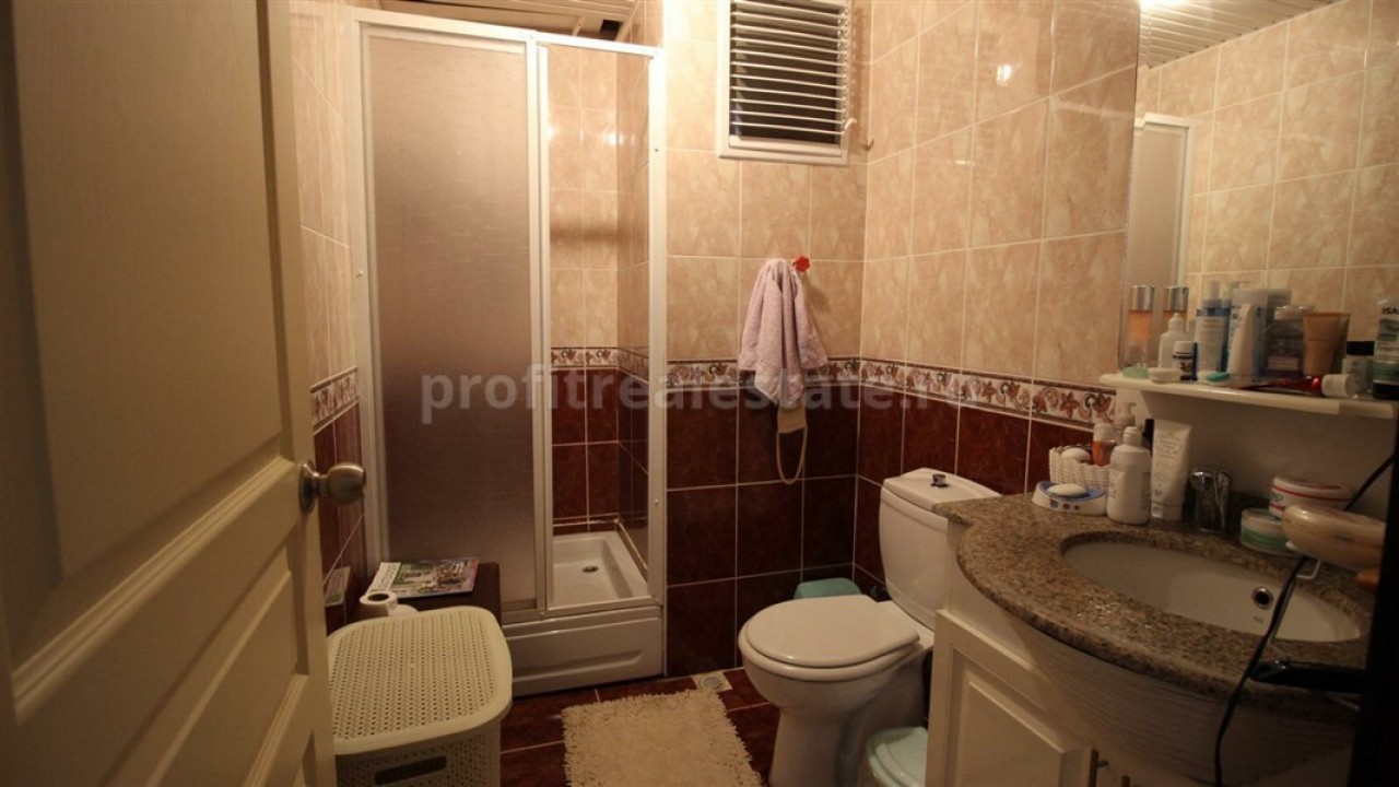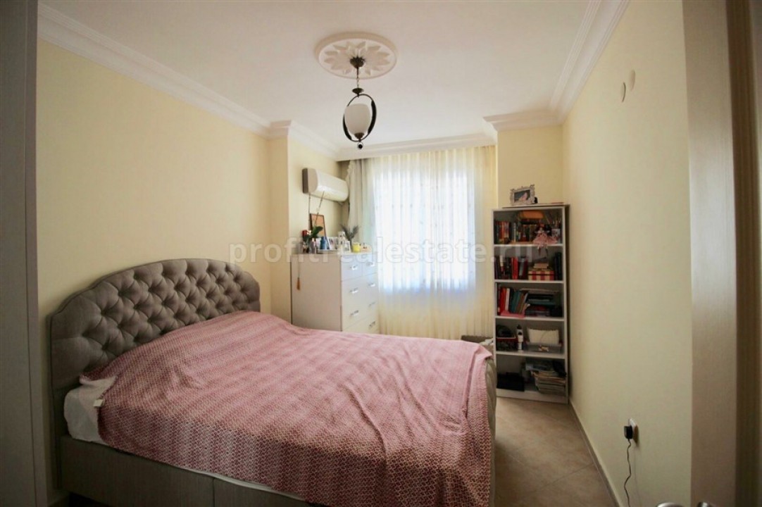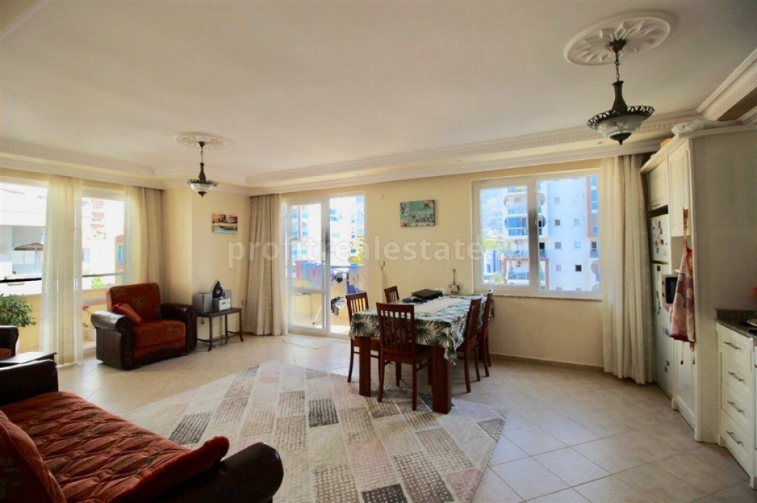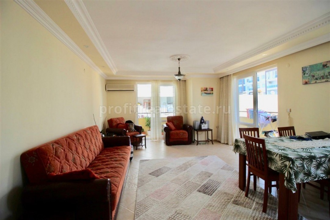 Вашему вниманию просторная трехкомнатная квартира, которая выставлена на продажу от собственника в очень развитом и популярном районе Алании Махмутлар. Здесь две спальных комнаты, кухня открытого типа, которая совмещена с гостиной, две ванных комнаты, прихожая и два балкона. Большим плюсом является то, что квартира продается со всей необходимой мебелью и техникой. Одна из спальных комнат является хозяйской, а вторая спальня хорошо подойдет для гостевой комнаты. Она меблирована красивым спальным гарнитуром с большой двуспальной кроватью.