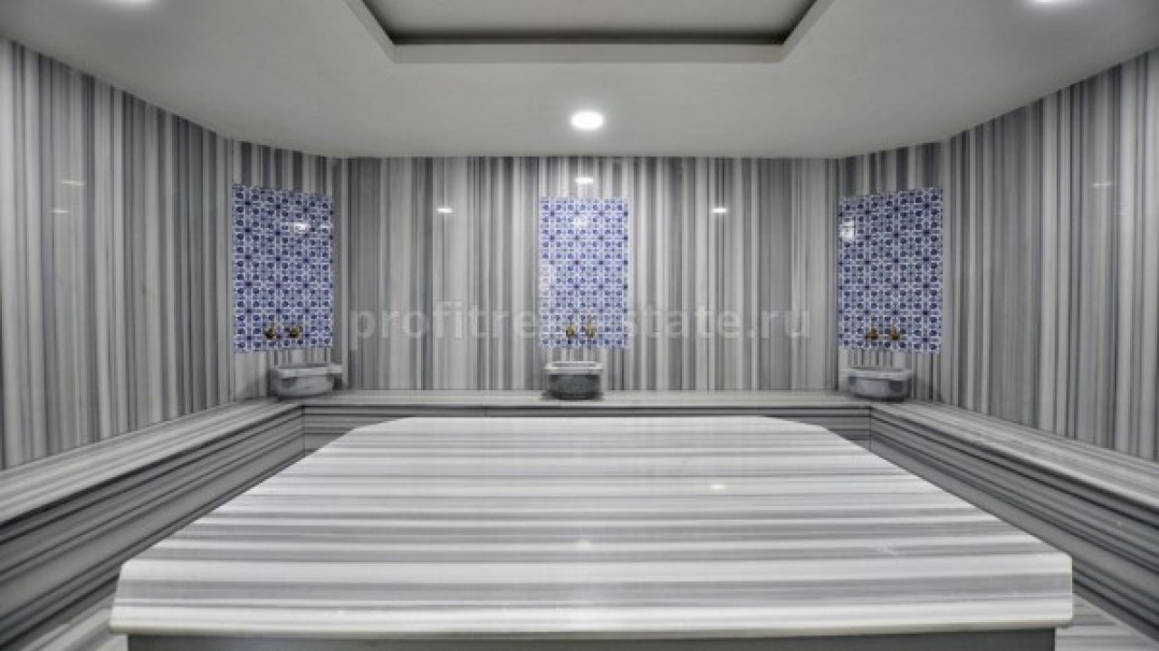 Апартаменты расположены на первом высоком этаже в комплексе 2018 года постройки, который находится в 5 минутах ходьбы от моря (200 метров), в в 2 минутах от центра района Махмутлар. К Вашим услугам в комплексе есть сауна, хамам, бассейн, тренажерный зал, лифт. В шаговой доступности к дому находятся магазины и сетевые супермаркеты, а также остановка городского транспорта. Рейсовый городской автобус за считанные минуты довезет Вас в любую точку Алании. Помимо этого в Махмутларе есть школы, детские сады, отделения банков, аптеки, кафе и все, что нужно для Вашей комфортной жизни.