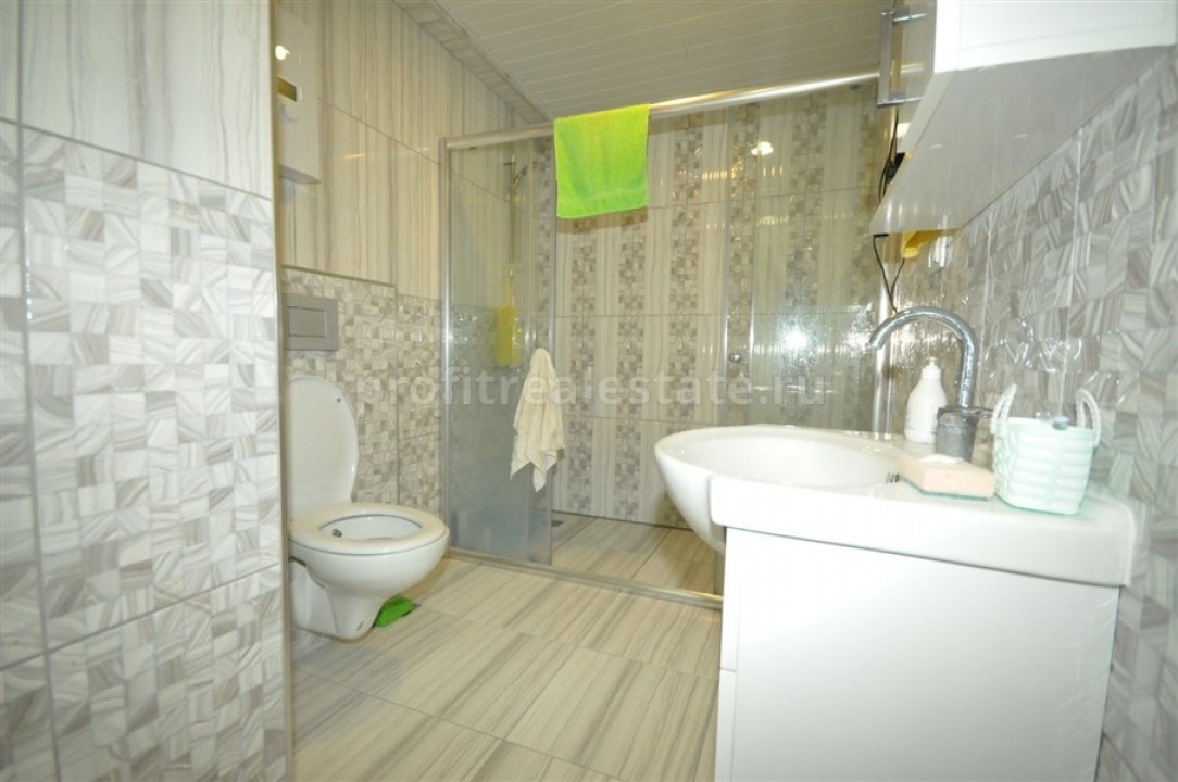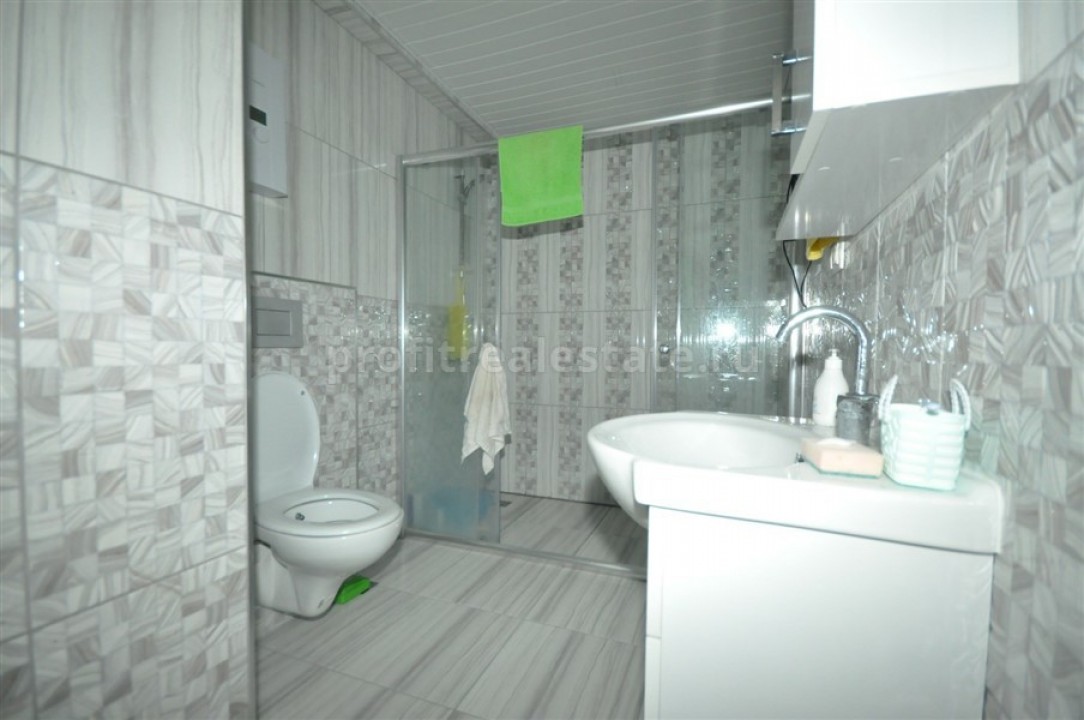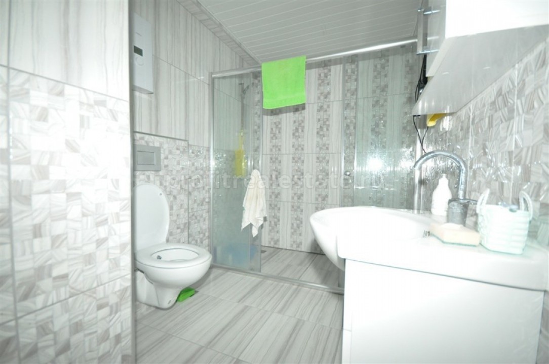 Внутренняя отделка квартиры выполнена в светлых тонах. Стены покрыты белой краской, пол обшит белым гипсокартоном со встроенным led-освещением; на полу - светло-бежевая плитка. Из балкона открывается шикарный вид на город. Расстояние от дома до моря составляет 700 метров, а до центра Махмутлара - всего 600 метров. В шаговой доступности к дому расположены всевозможные магазины, супермаркеты, кафе, аптеки, отделения банков. Внутренняя инфраструктура комплекса представлена наличием плавательного бассейна, сауны, детской площадки, беседки для барбекю. Территория комплекса очень зеленая, чистая и ухоженная. За порядком здесь следит смотритель.