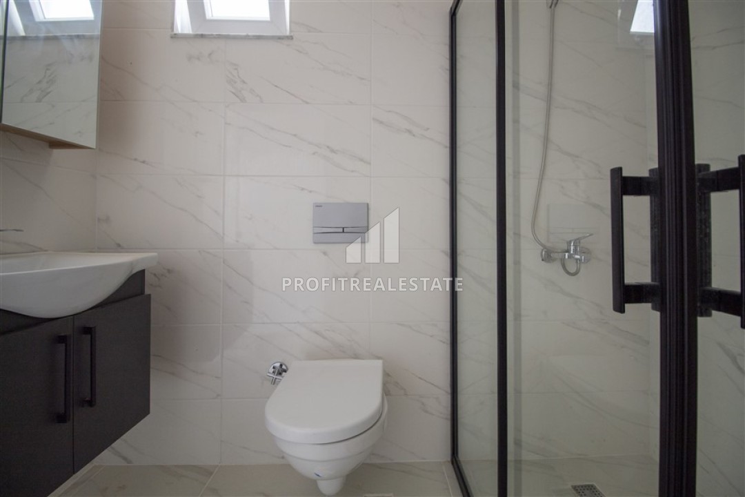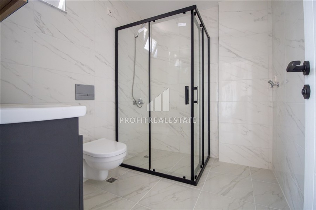 В Кепезе, одном из самых многочисленных и перспективных районов Антальи, на продажу выставлена новая двухкомнатная квартира, площадью 50 м2. Она занимает 2 этаж двухэтажного дома, построенного в 2022 году, на расстоянии 11000 метров от моря и 1000 метров от центра. При этом, его инфраструктура представлена лишь закрытой территорией, ландшафтным садом и парковкой.