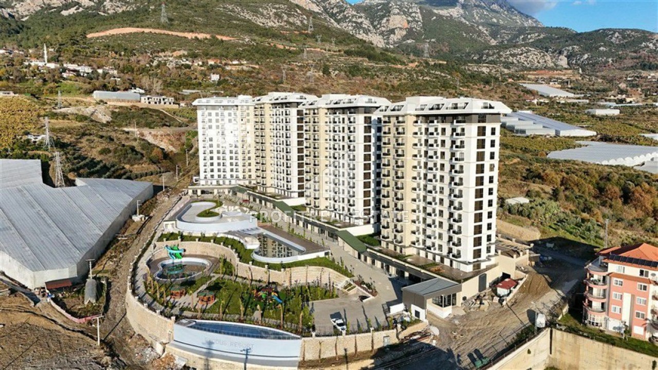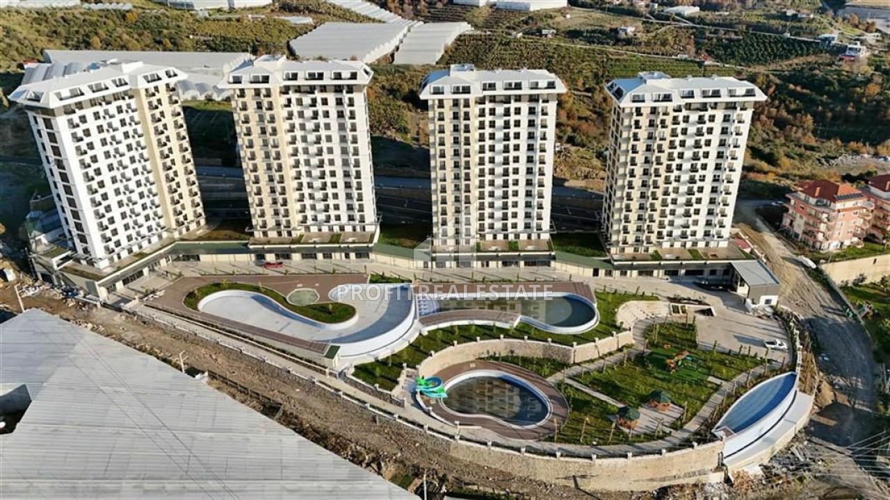Предлагаем вам апартаменты в новой резиденции в районе Алании Махмутлар. Это отличное предложение от собственника для любителей горных пейзажей и чистейшего воздуха в комплексе с отельной инфраструктурой. Масштабный проект, введенный в эксплуатацию в 2025 году, состоит из четырех двенадцатиэтажных блоков, расположенных на большой закрытой территории с прекрасным ландшафтным садом, автомобильной парковкой, большим плавательным бассейном, уютными зонами отдыха и барбекю. Для комфорта жителей на территории резиденции работает кафе. Детишек порадует детская игровая площадка, а в зимнее время будет приятно поплавать в подогреваемом закрытом бассейне. Комплекс расположен в окружении цитрусовых и оливковых садов, у подножия гор Торос, в 3200м от благоустроенной набережной и пляжа, и в 2800м от центра района Махмутлар, что даст возможность жить спокойной размеренной жизнью, просыпаться под пение птиц, недалеко от всей городской и социальной инфраструктуры.
