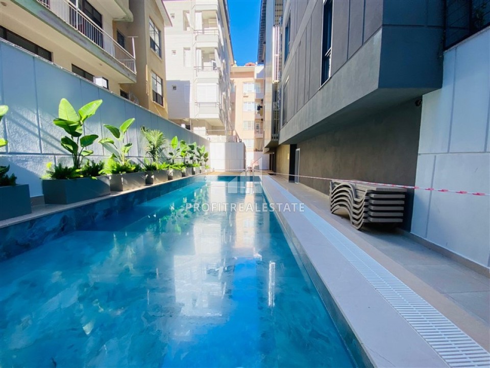 Апартаменты с одной спальней, 55м², с бытовой техникой в новостройке с бассейном у пляжа Клеопатры, Алания