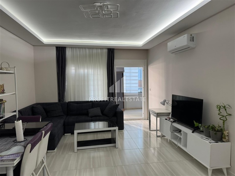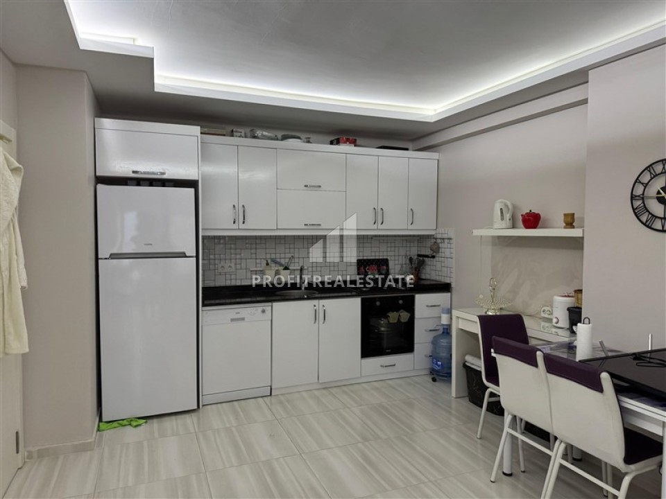 Большая меблированная квартира с одной спальней, 70м² в комплексе с зимним бассейном в 250м от моря в Махмутларе, Алания