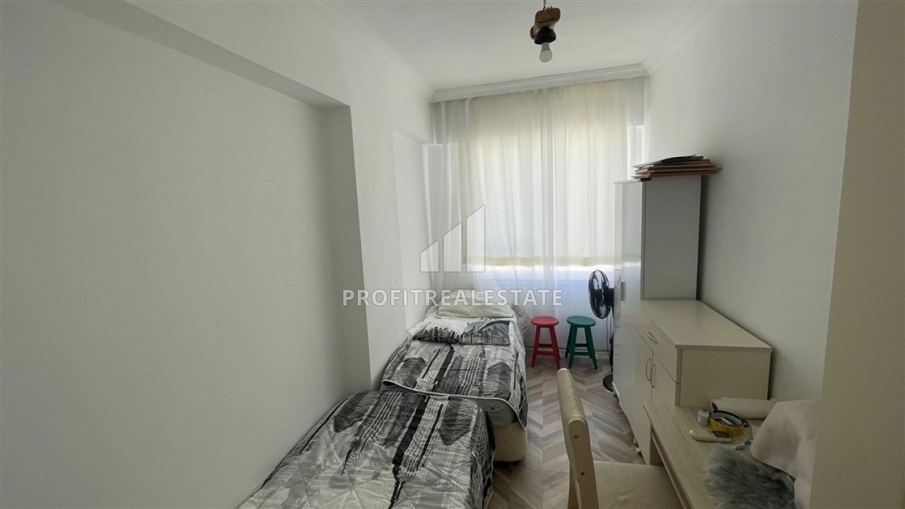 Хотите приобрести недорогую квартиру на берегу моря? Тогда не упустите, по-настоящему, выгодное предложение - апартаменты по доступной цене и полностью готовые к проживанию. Продается квартира с двумя спальнями, площадью 100м², расположенная на 4 этаже в комплексе 2005 года постройки. В планировку 2+1 входит: уютная гостиная с набором мягкой мебели, совмещенная с кухней открытого типа, которая визуально несколько отделена от зоны отдыха обеденной зоной на 4-6 персон, две меблированные спальни, прихожая с местом для шкафа для верхней одежды и обуви, две ванных комнаты, оборудованные всей необходимой сантехникой и один балкон. Апартаменты находятся в хорошем состоянии, после ремонта, с современным интерьером. В стоимость входит: мебель, бытовая техника, кондиционеры, как на представленных фото.