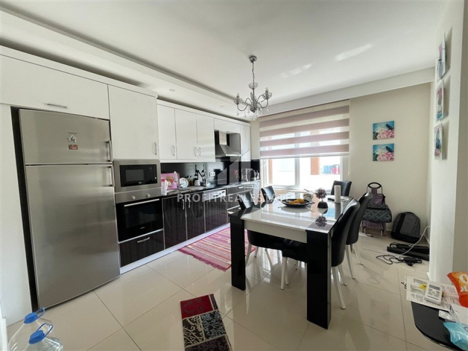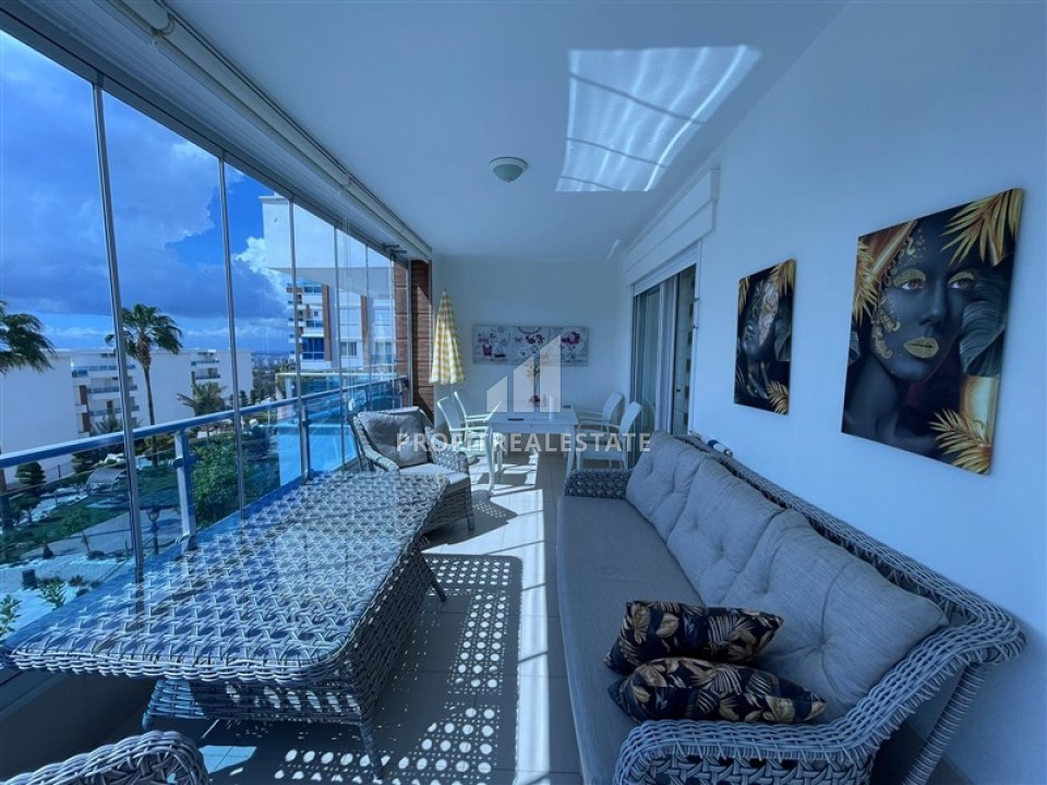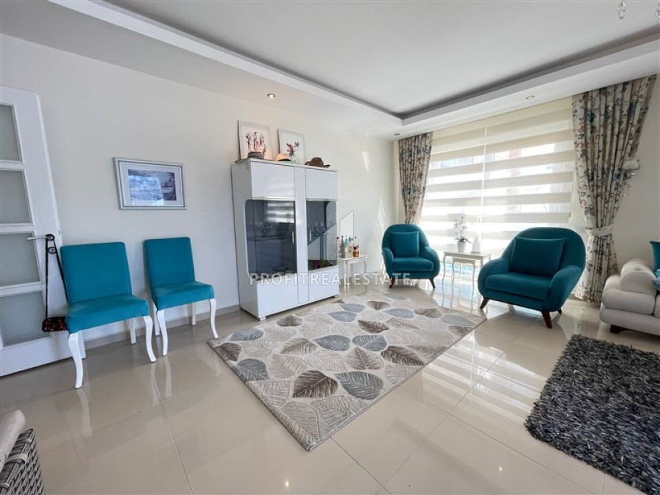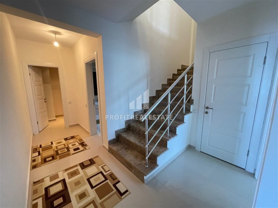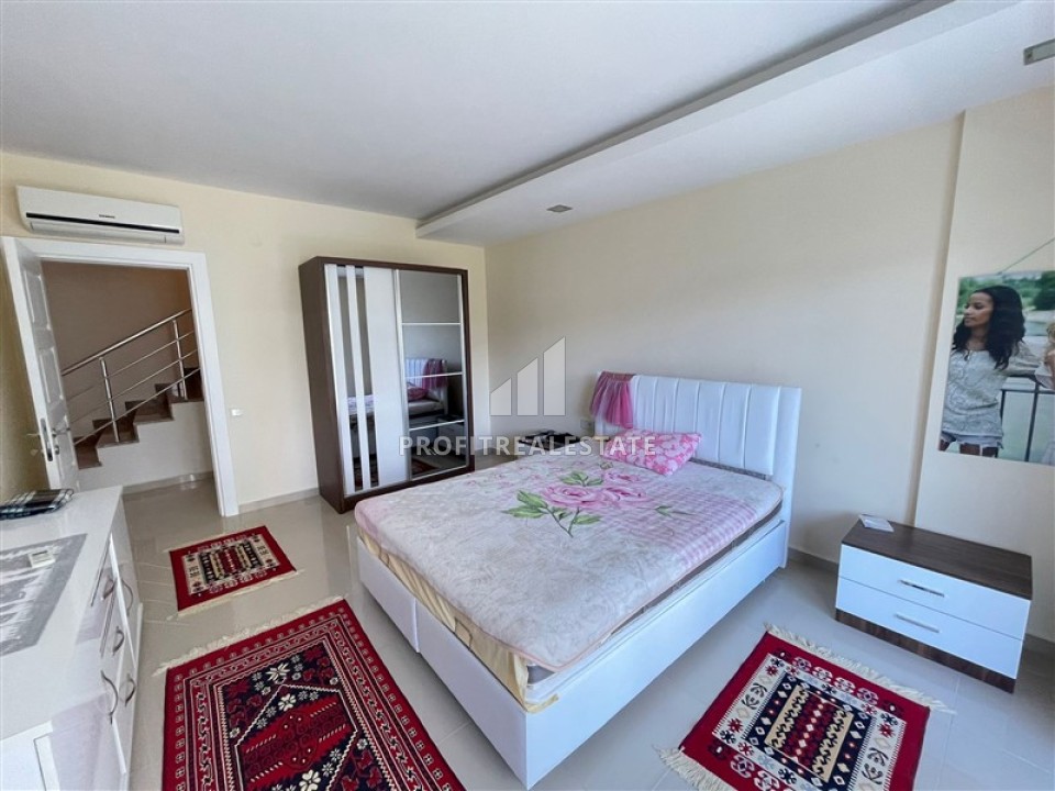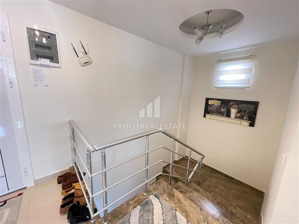Продается дуплекс 3+1, с 200м² общей площади. Вход в апартаменты находится на верхнем этаже, и вы попадаете в выделенную хорошую зону прихожей с тумбами для обуви. Просторная гостиная с элегантной мягкой мебелью порадует шикарными видами сквозь панорамные окна. Новые владельцы по достоинству оценят просторную отдельную кухню, которая укомплектована корпусной мебелью и полным комплектом необходимой бытовой техники. Здесь же расположилась обеденная зона для большой семьи. В прихожей находится удобная гранитная лестница, спускаясь по которой вы попадаете в приватную зону семьи. Три меблированные спальни, расположенные здесь, имеют прекрасные виды. Три ванные комнаты (по одной на этаже и третья в главной спальне), две - с большими душевыми кабинами, третья – гостевой санузел, укомплектованы местами для хранения и качественным сантехническим оборудованием. Под лестницей разместилась вместительная кладовая. Особого внимания заслуживают два балкона больших размеров на каждом этаже, с великолепным видом на Средиземное море и Торосские горы, живописные окрестности и, лежащий под ногами, район Каргыджак. На балконах обустроены уютные зоны для отдыха и приема пищи, а их остекление позволит любоваться великолепным видом при любой погоде. С балкона нижнего этажа можно выйти прями в сад и, с утренним кофе, вдыхать умопомрачительный воздух и слушать пение птиц в тени деревьев. Дуплекс находится в отличном состоянии, продается с полным комплектом мебели и бытовой техники, которую вы видите на фото.