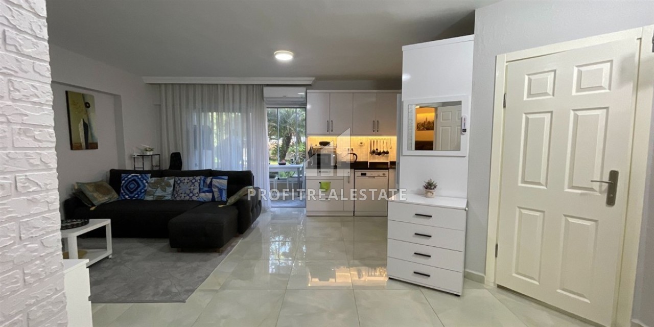 Двухкомнатная меблированная квартира, 50м², в самом сердце Алании в комплексе с бассейном, в 250м от моря