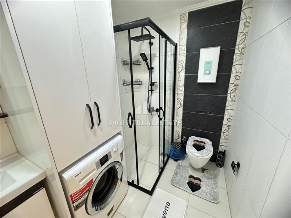 В нашем портфолио появилось отличное предложение от собственника, которое мы и хотим представить вашему вниманию. Это полностью готовая к проживанию, обустроенная квартира 1+1, площадью 60м². Апартаменты располагаются на высоком 9 этаже, в комплексе 2014 года, состоящем их одного двенадцатиэтажного блока, с ухоженной территорией и комфортной инфраструктурой. В резиденции есть открытый плавательный бассейн с водной горкой и зоной для загара, детская площадка, беседка для отдыха с зоной барбекю и автомобильная парковка. Внутренняя инфраструктура представлена тренажерным залом, сауной и турецкой баней. Благоустроенная территория располагает резервным генератором, находится под круглосуточной охраной и видеонаблюдением.
