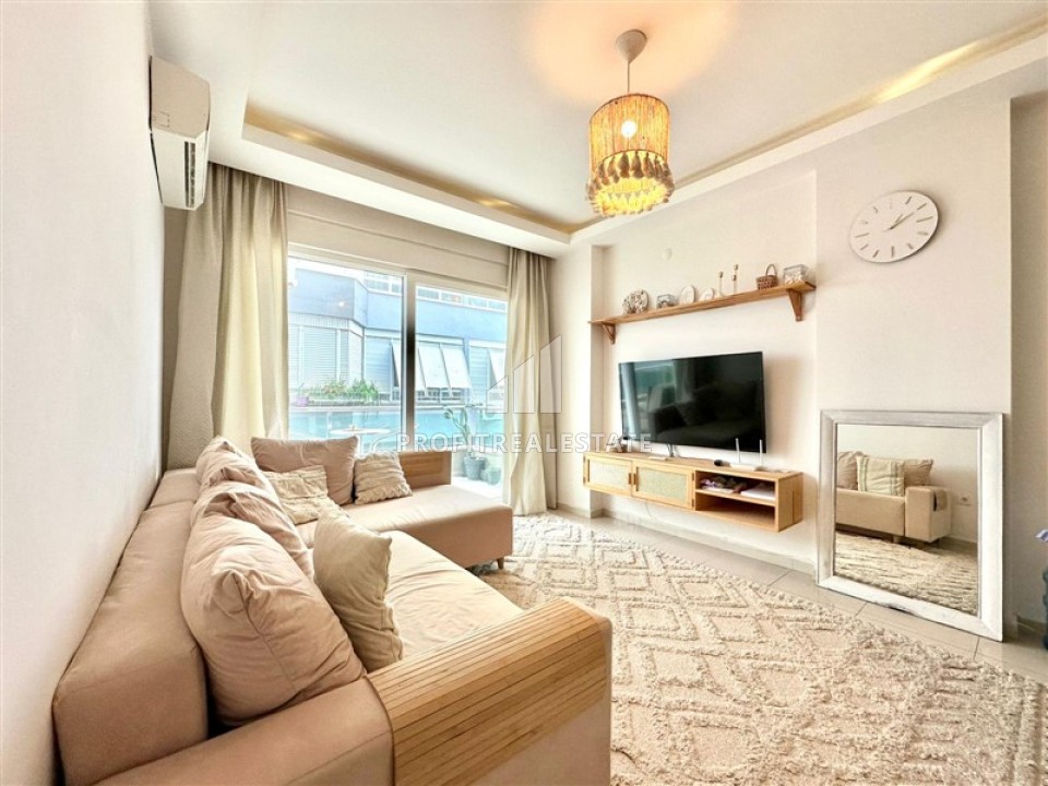 Элегантная меблированная квартира 2+1, 89м², в резиденции с инфраструктурой в 600м от моря в районе Оба, Алания