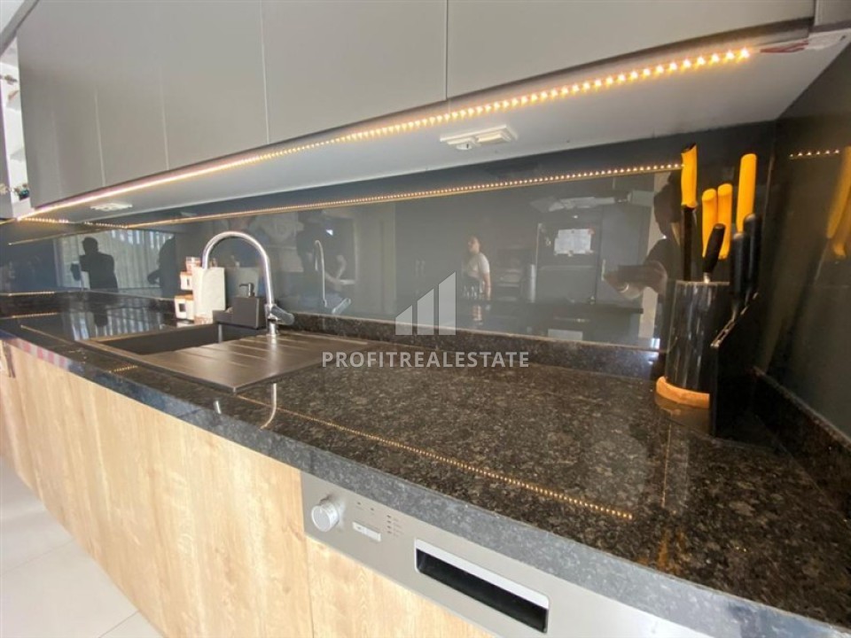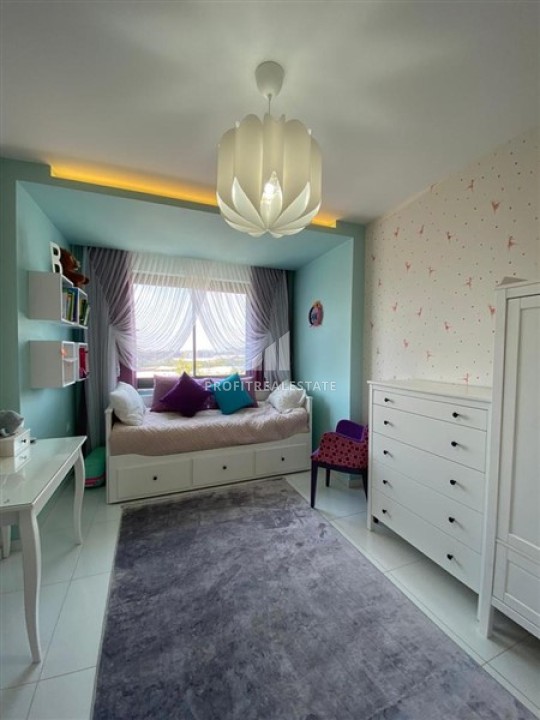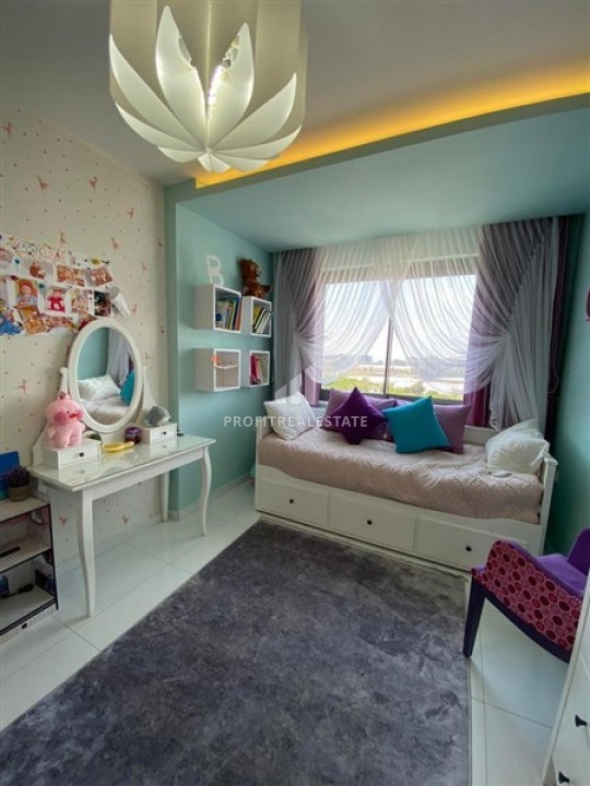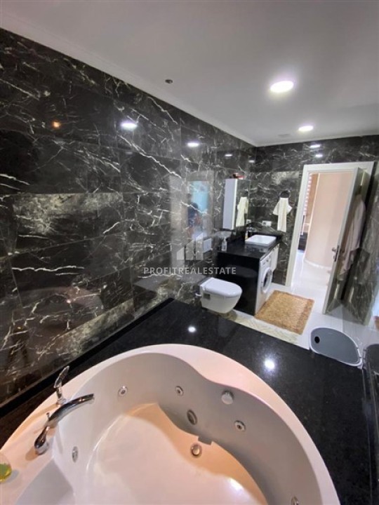 Выбирая недвижимость для себя и своей семьи, мы, по большому счету, выбираем определенный стиль жизни. И если вы любите роскошь и комфорт и хотите стать счастливым обладателем квартиры в элитном уютном комплексе в престижном районе, то это предложение для вас. Предлагаем вашему вниманию садовый дуплекс 3+1, площадью 232м². Апартаменты имеют: гостиную со стильной мягкой мебелью и обеденной зоной для большой семьи, большую отдельную кухню с кухонным островом, полным комплектом мебели и бытовой техники. На верхнем этаже дуплекса расположены три спальни. Две из них меблированы как детская и родительская спальни, а третья – как гостиная - кабинет. Родительская спальня имеет вместительную гардеробную. Апартаменты располагают тремя ванными комнатами с качественной мебелью и сантехникой (по одной на каждом этаже и в родительской спальне). В одной ванной комнате установлены и душевая кабина, и джакузи. Собственников порадует два больших балкона верхнего этажа, с садовой мебелью, видом на горы, ухоженную территорию комплекса и Средиземное море. Нижний этаж располагает балконом и террасой. Балкон с выходом из гостиной ориентирован на инфраструктуру резиденции, а из кухни можно выйти на потрясающую террасу с обустроенной зоной отдыха и приватной лужайкой. В прихожей, со встроенными шкафами, находится удобная гранитная лестница, соединяющая этажи апартаментов. В апартаментах поработал дизайнер, выполнен качественный ремонт, эргономично использован каждый метр этой потрясающей квартиры. В стоимость также включены элементы декора и текстиль, как вы можете видеть на представленных фото.