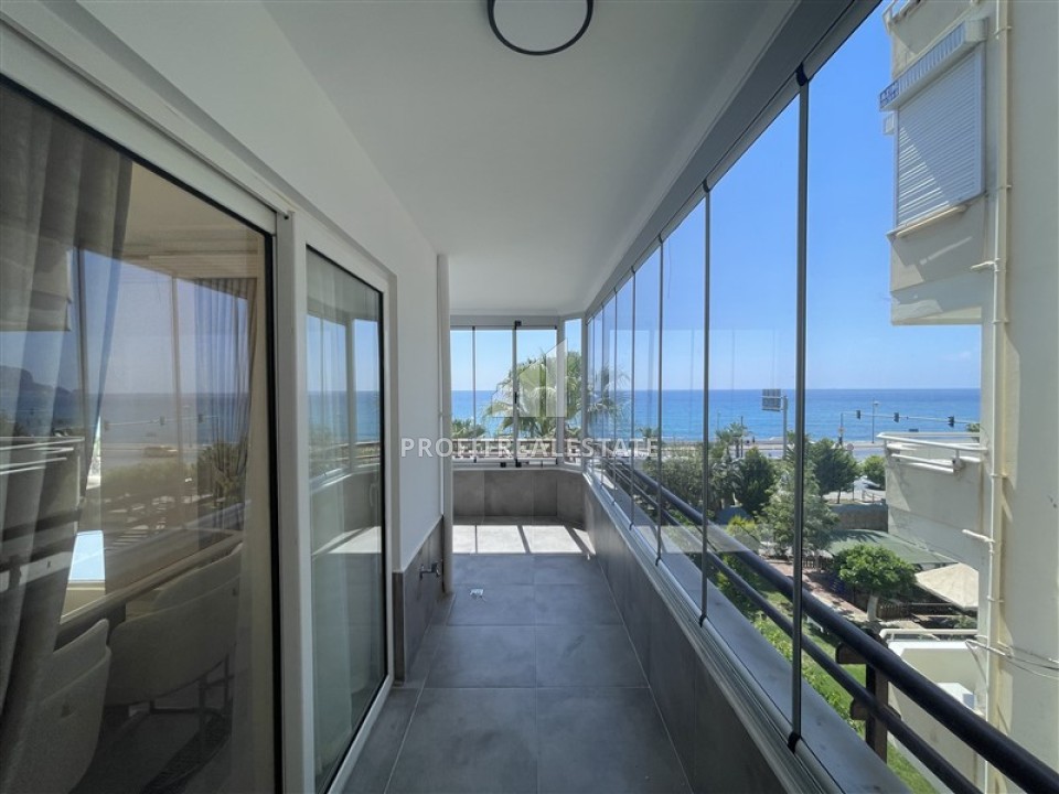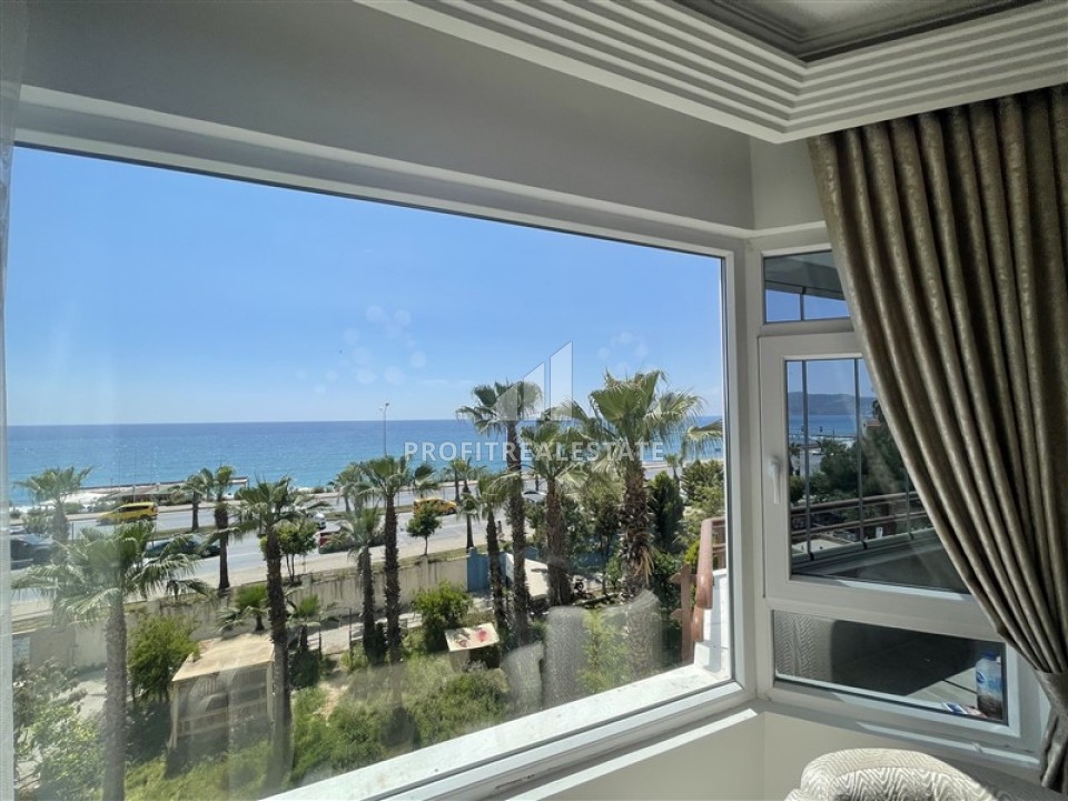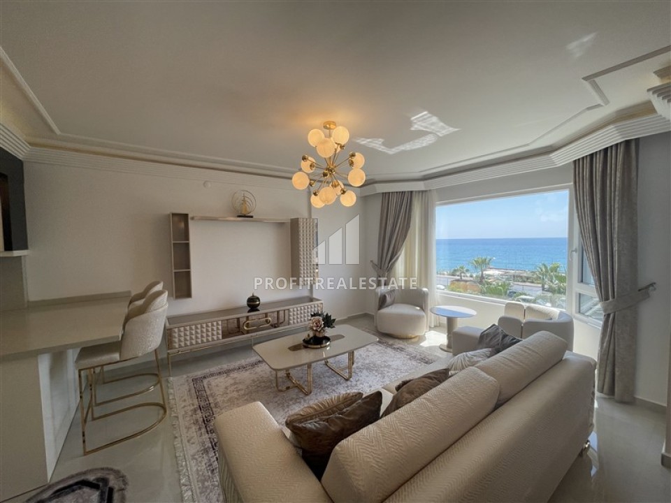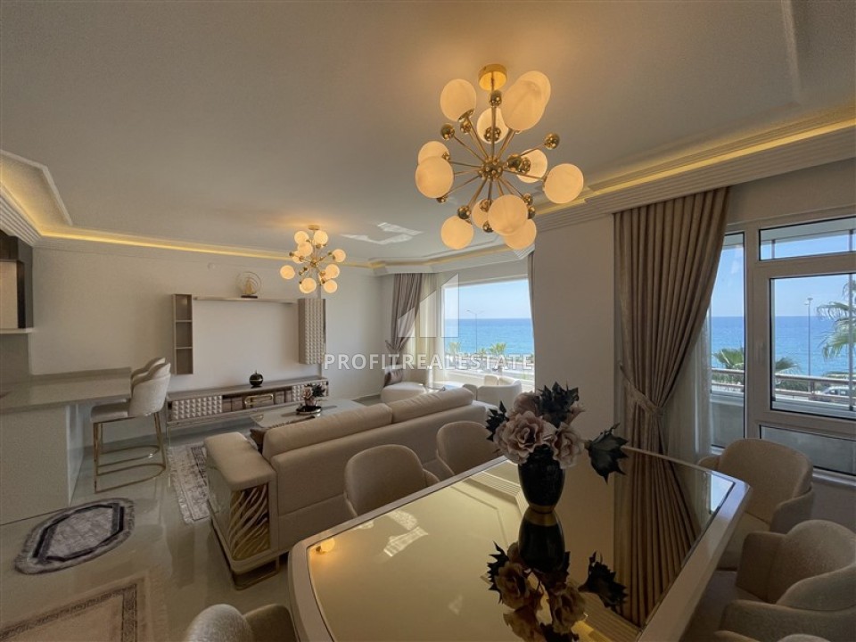 Элитная двухкомнатная квартира, 95м², на первой береговой линии с видом на Аланийскую крепость в районе Тосмур, Алания