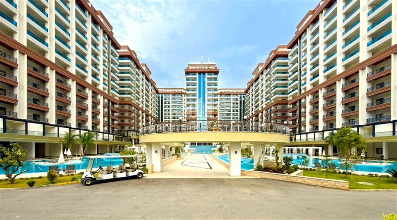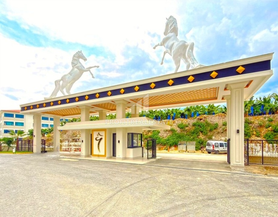 Элитная надвижимость в Махмутларе, Алания: двухкомнатные апартаменты, 68м², с видом на горы в фешенебельном комплексе