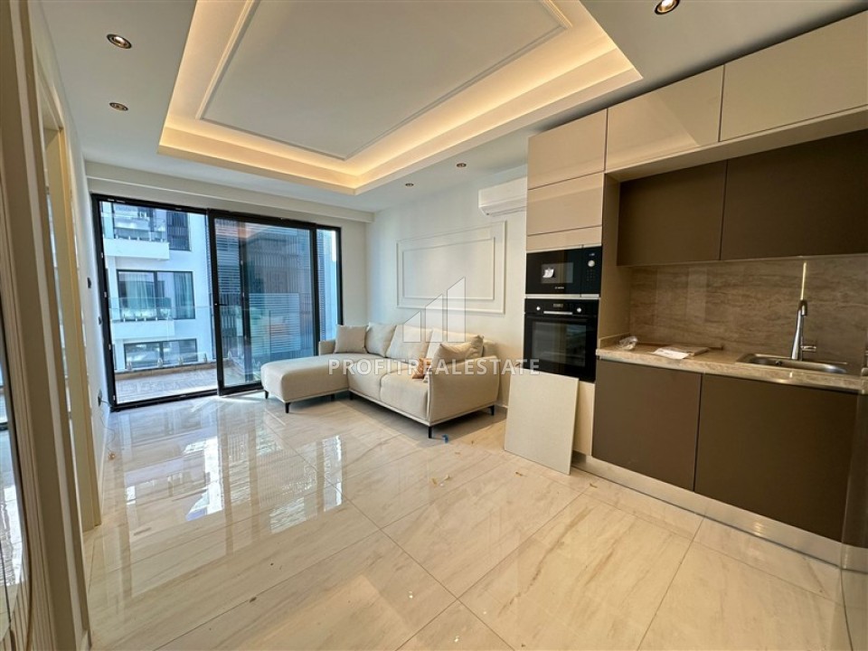 Элитная недвижимость на первой береговой линии в Махмутларе: квартира 1+1, 55м², в новостройке с отельной инфраструктурой