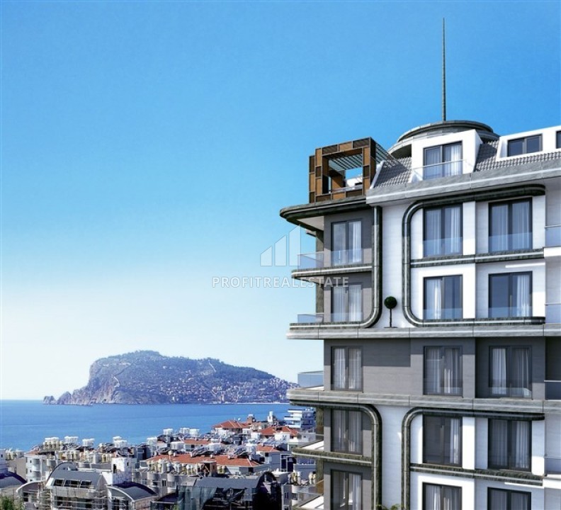 Элитная недвижимость: видовые апартаменты 1+1, 50м², в комплексе премиум-класса в 200м от моря в районе Алании Тосмур
