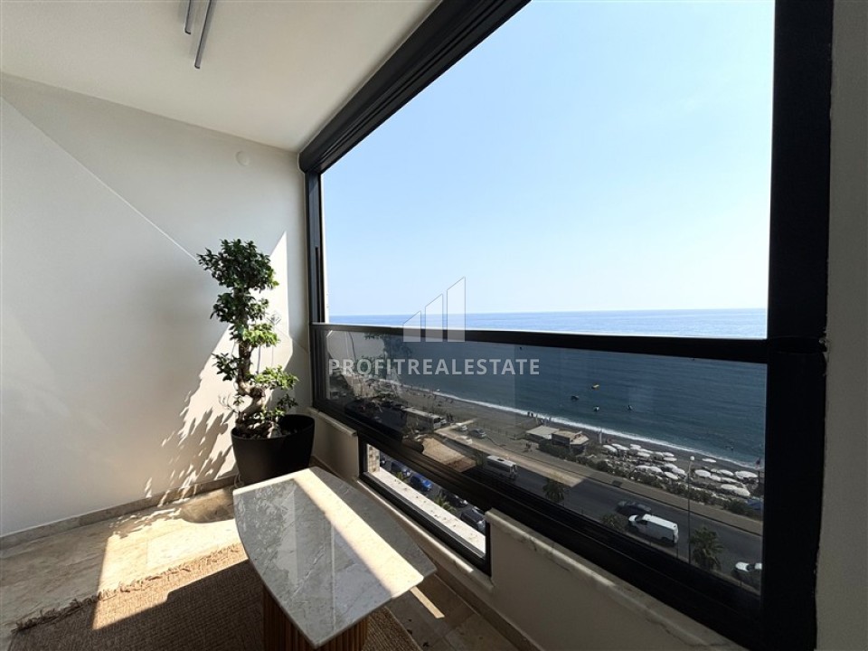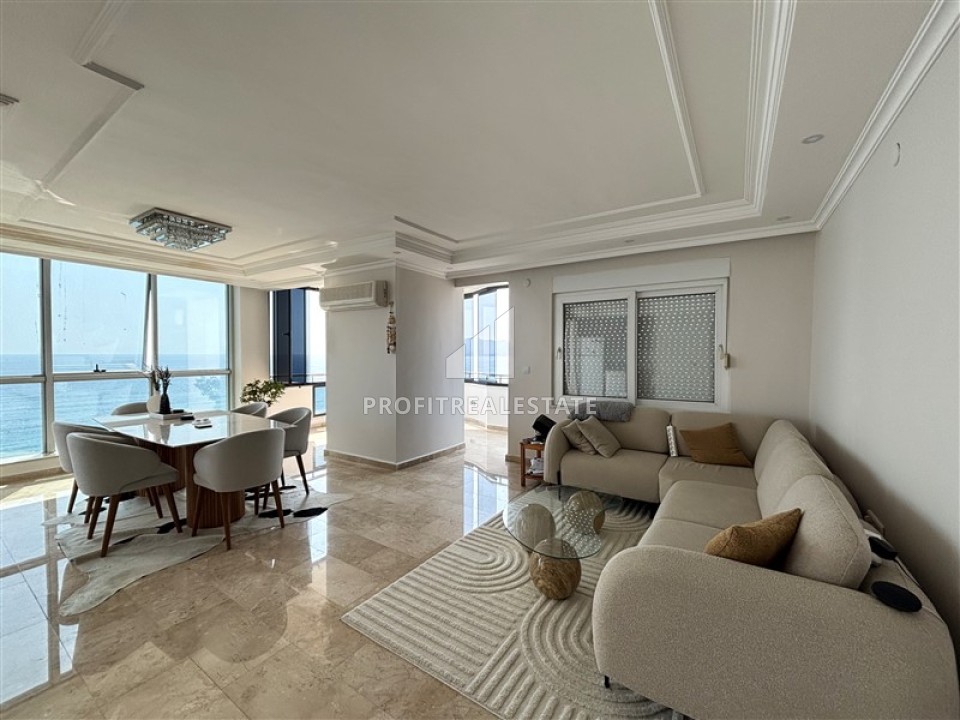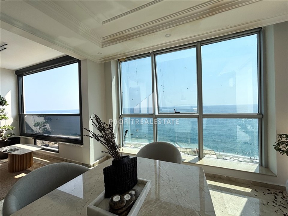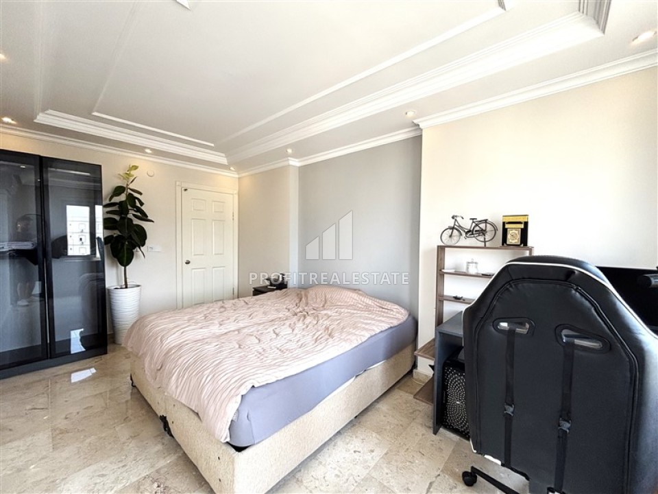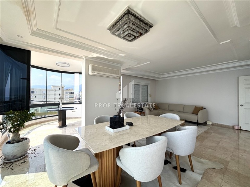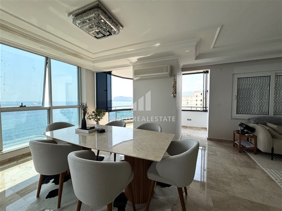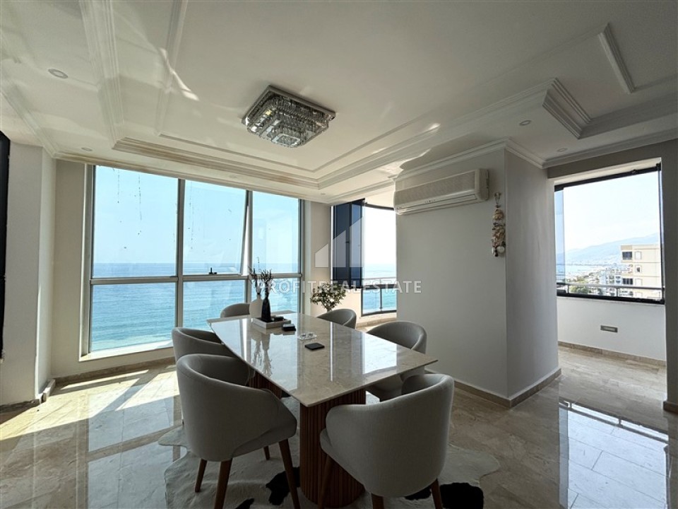 Пентхаус 4+1, 200м², на первой береговой линии с захватывающим видом на море и крепость Алании, в центре района Тосмур, Алания