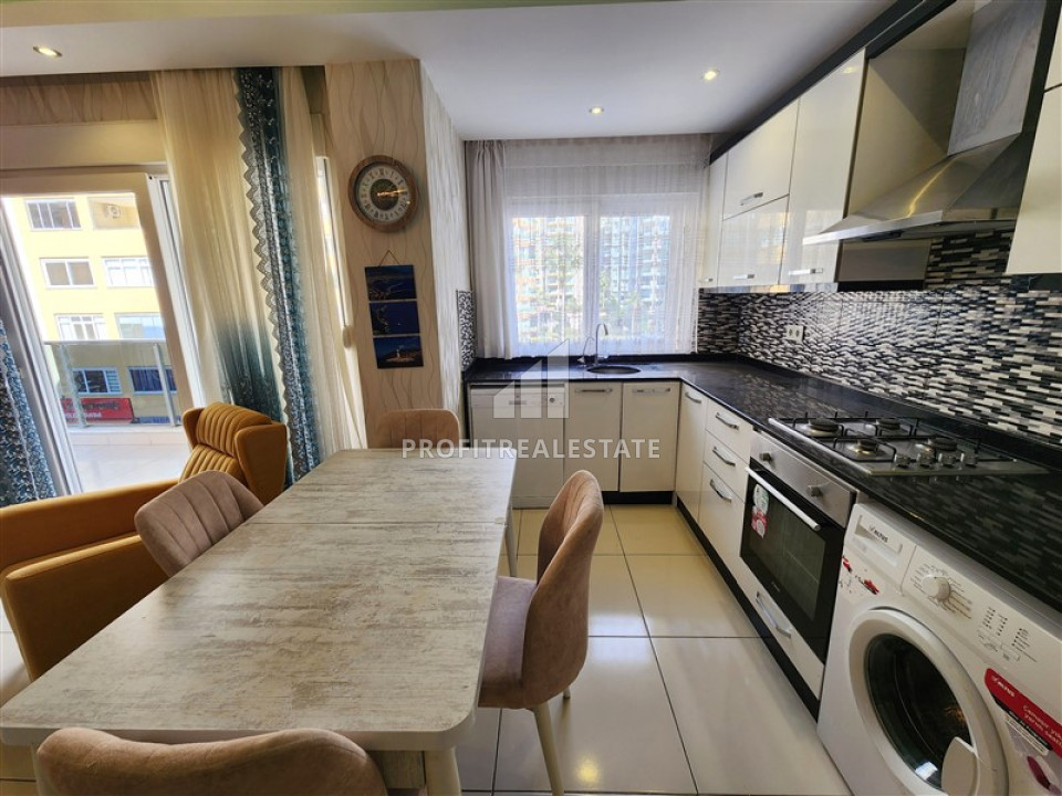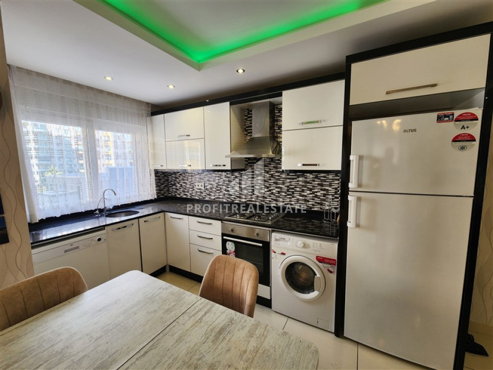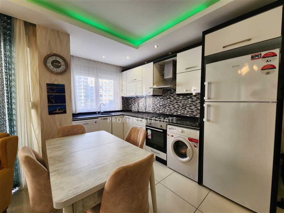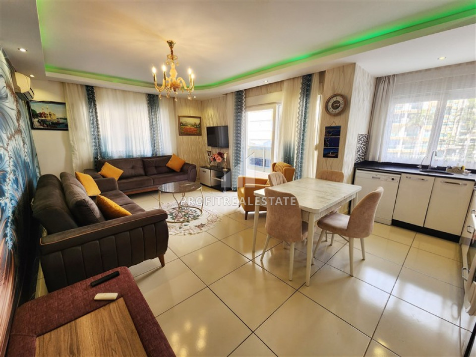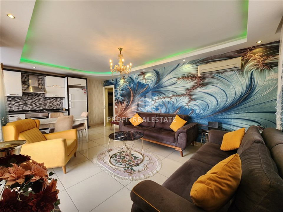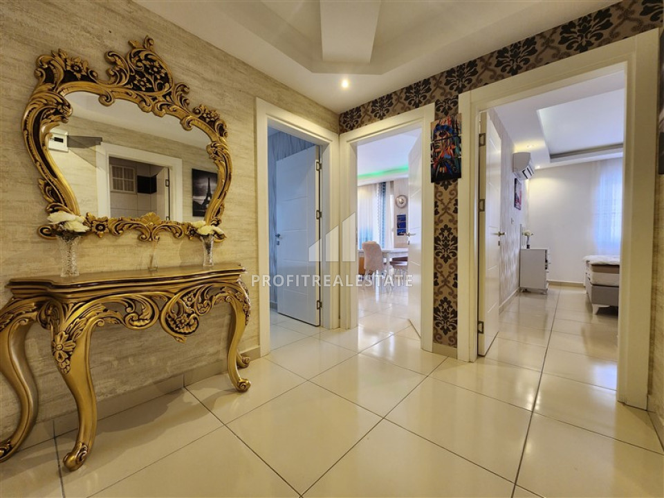 Фешенебельная трехкомнатная квартира с авторским интерьером и застекленным балконом в Махмутларе, Аланья