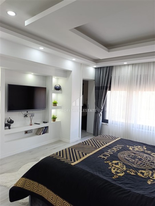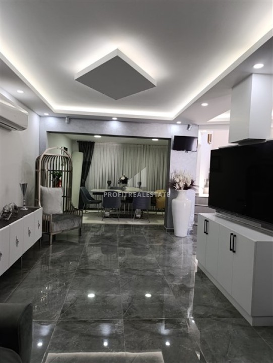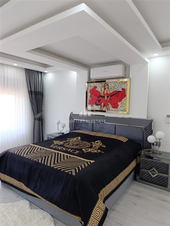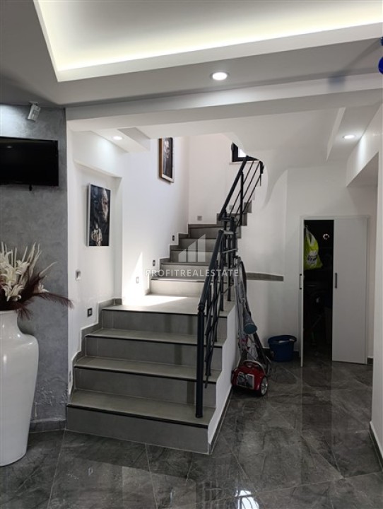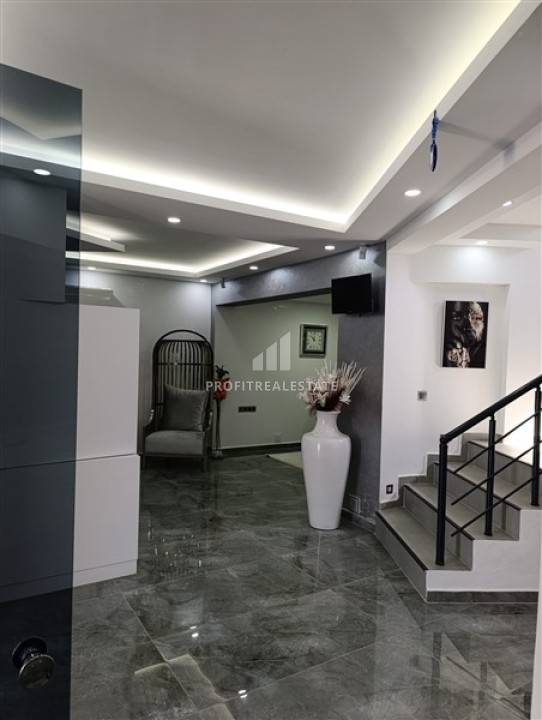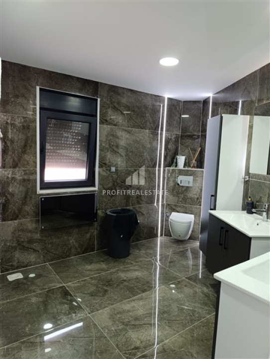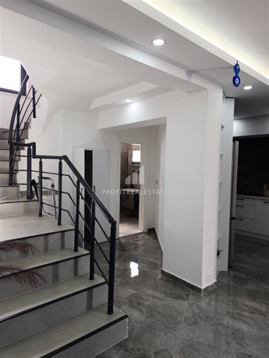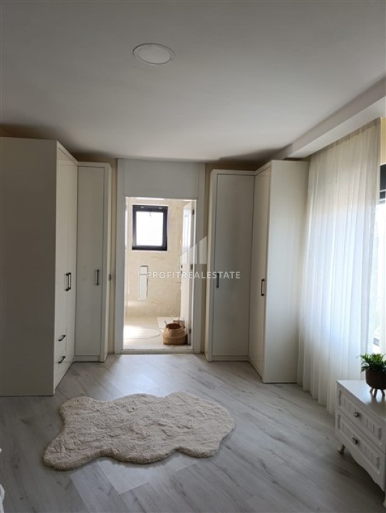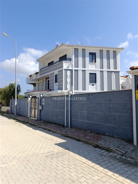 Трехэтажная вилла, сданная в эксплуатацию в 2016 году, расположена на отдельном земельном участке, площадью 400м². В коттедже планировки 4+1 представлены: большая гостиная, отдельная кухня, четыре спальни, четыре ванных комнаты (каждая спальня имеет приватную ванную комнату), гостевой санузел без душевой кабины и прихожая с лестницей, соединяющей этажи. Вилла располагает двумя балконами с приятным видом на сад и соседние дома. На придомовой территории разместился летний бассейн с зоной отдыха, крытая беседка, где можно обустроить уютную обеденную зону, барбекю. Приятным бонусом является наличие парковки.