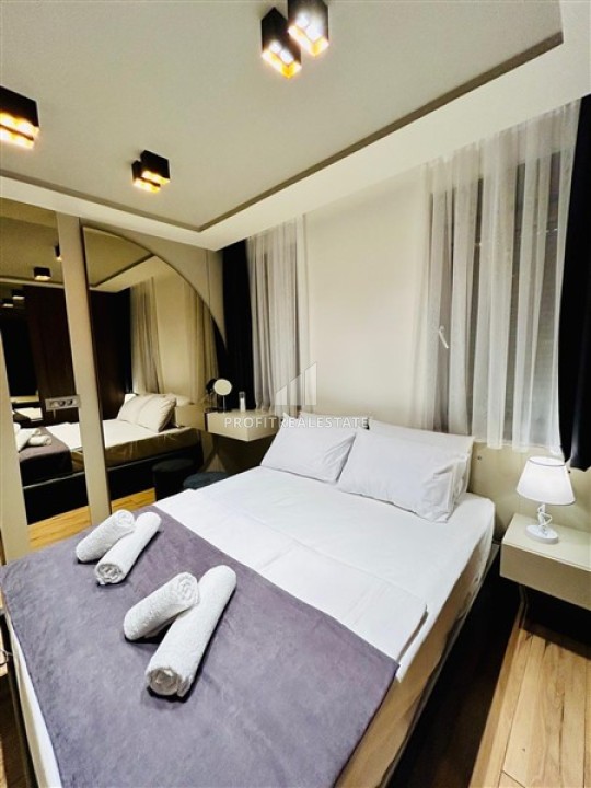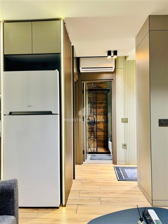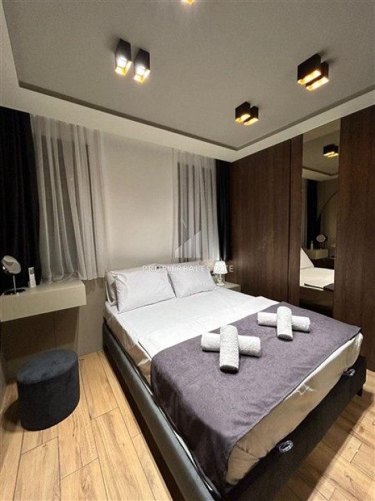 Газифицированная квартира 1+1, 55м², с дизайнерским интерьером в комплексе 2024 года с бассейном в районе Коньяалты, Анталия