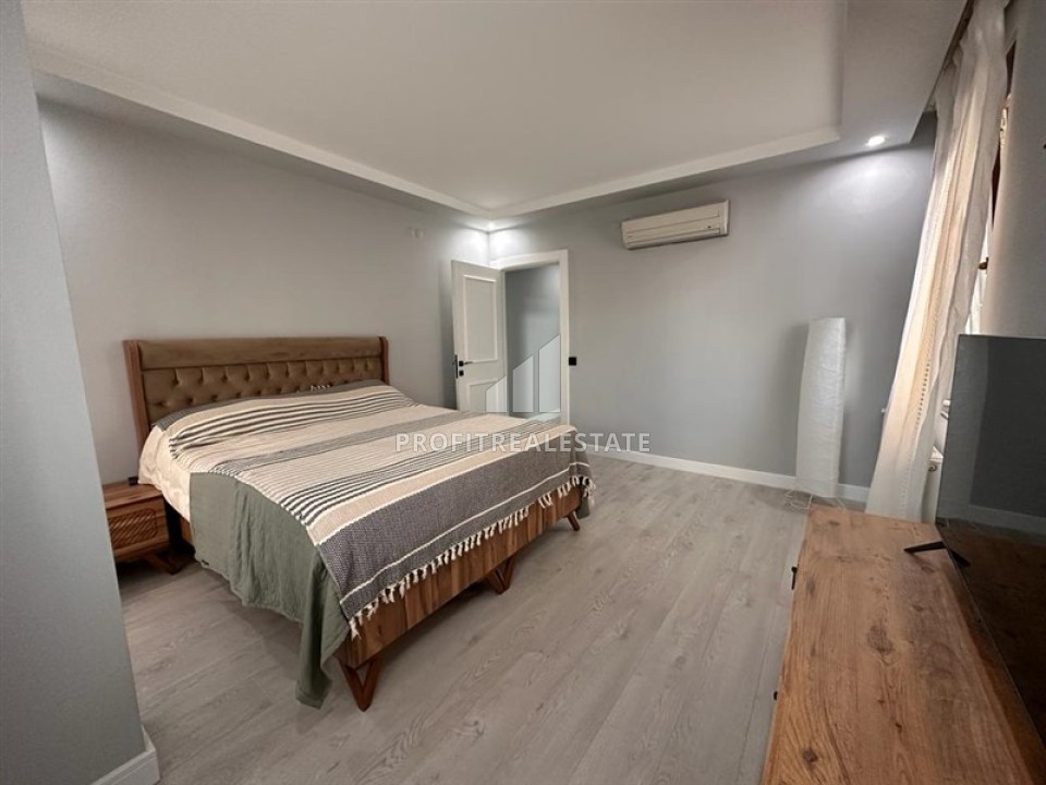 В микрорайоне Гюзельолук, который является частью престижного района Лара, Анталия и находится в нескольких кварталах от водопада, на продажу от собственника выставлена трехкомнатная квартира, площадью 90 м2. Она занимает невысокий первый (или нулевой) этаж четырехэтажного жилого дома, построенного в 2015 году, на расстоянии 1500 метров от моря и 200 метров от центра района. На закрытой придомовой территории вы найдете парковку и ландшафтный сад. Кроме того, дом газифицирован и в квартире есть электрогазовая колонка, которая обеспечит вас горячей водой и отоплением.