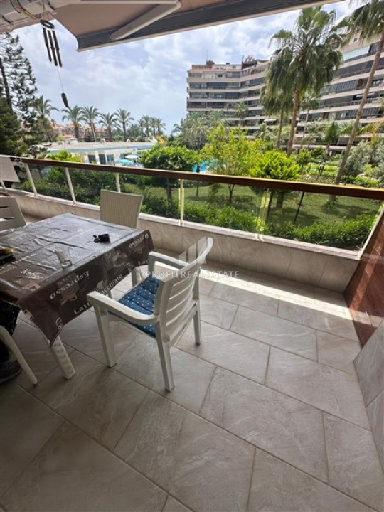 Квартира, площадью 115м², находится на 1 этаже одного из блоков резиденции. В апартаментах просторный салон объединен с кухней открытого типа, две спальни, две ванных комнаты, хорошая прихожая и два отличных балкона. Гостиная обладает внушительными размерами, позволившими разместить симпатичную мягкую мебель. Кухня несколько отделена от зоны отдыха, располагает вместительным гарнитуром с большим количеством мест для хранения и полным комплектом бытовой техники. Небольшая барная стойка отделяет кухню от салона. Обе меблированные спальни светлые и просторные, а ванные комнаты укомплектованы качественной сантехникой и мебелью. Особого внимания заслуживают балконы, один из которых остеклен, с уютными зонами отдыха. С балкона открывается вид на ухоженную красивую территорию резиденции.