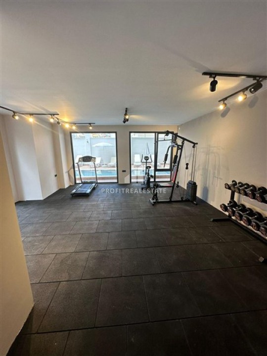 Квартира расположена на 4этаже в комплексе, введенном в эксплуатацию в 2024 году. На закрытой территории резиденции имеется открытый плавательный бассейн с зоной для загара, детская игровая площадка и генератор. Внутренняя инфраструктура представлена зимним бассейном, сауной, хамамом, паровой комнатой, уютным лобби и тренажерным залом.