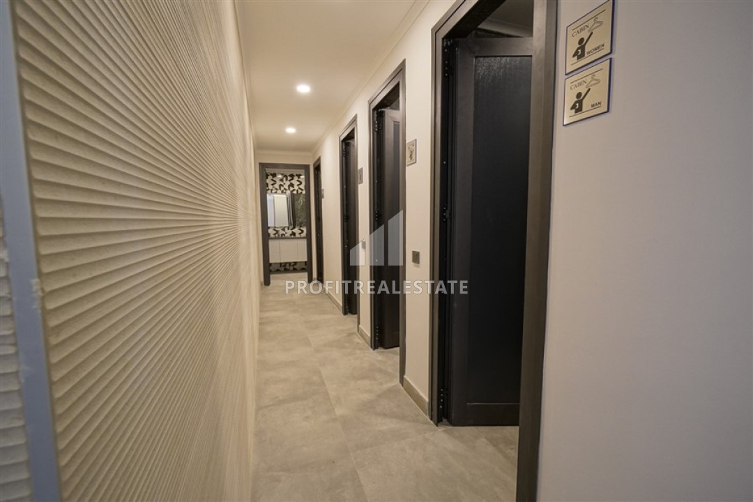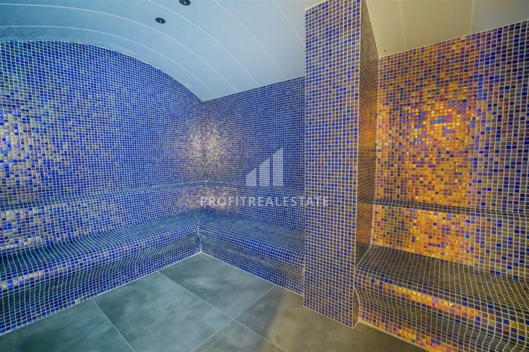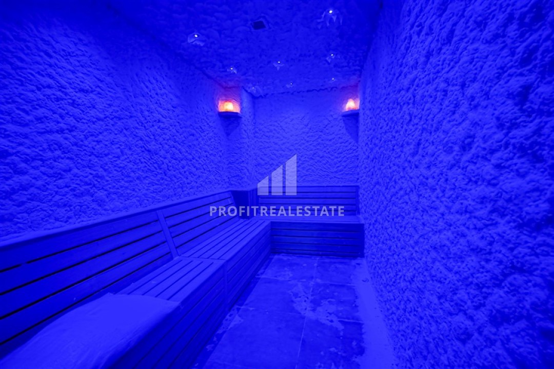 Что касается самого комплекса, он состоит из одного жилого блока, высотой в 9 этажей, и развитой внутренней инфраструктурой, отвечающей всем требованиям комфортного проживания. На территории резиденции расположены открытый и закрытый бассейны, аквапарк, сауна, парная комната, соляная комната, хамам, тренажерный зал. Кроме того, здесь зеленый сад, и площадкa для пикников и детскую игровую площадку. Для владельцев автотранспорта предусмотрена парковка. Немаловажным станет наличие современного лифта и генератора бесперебойной подачи энергии. Охрану комплекса обеспечит система круглосуточного видеонаблюдения.