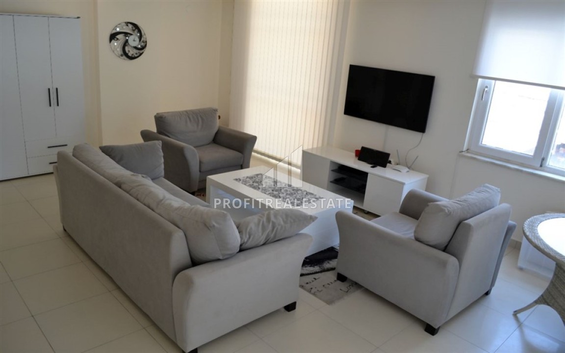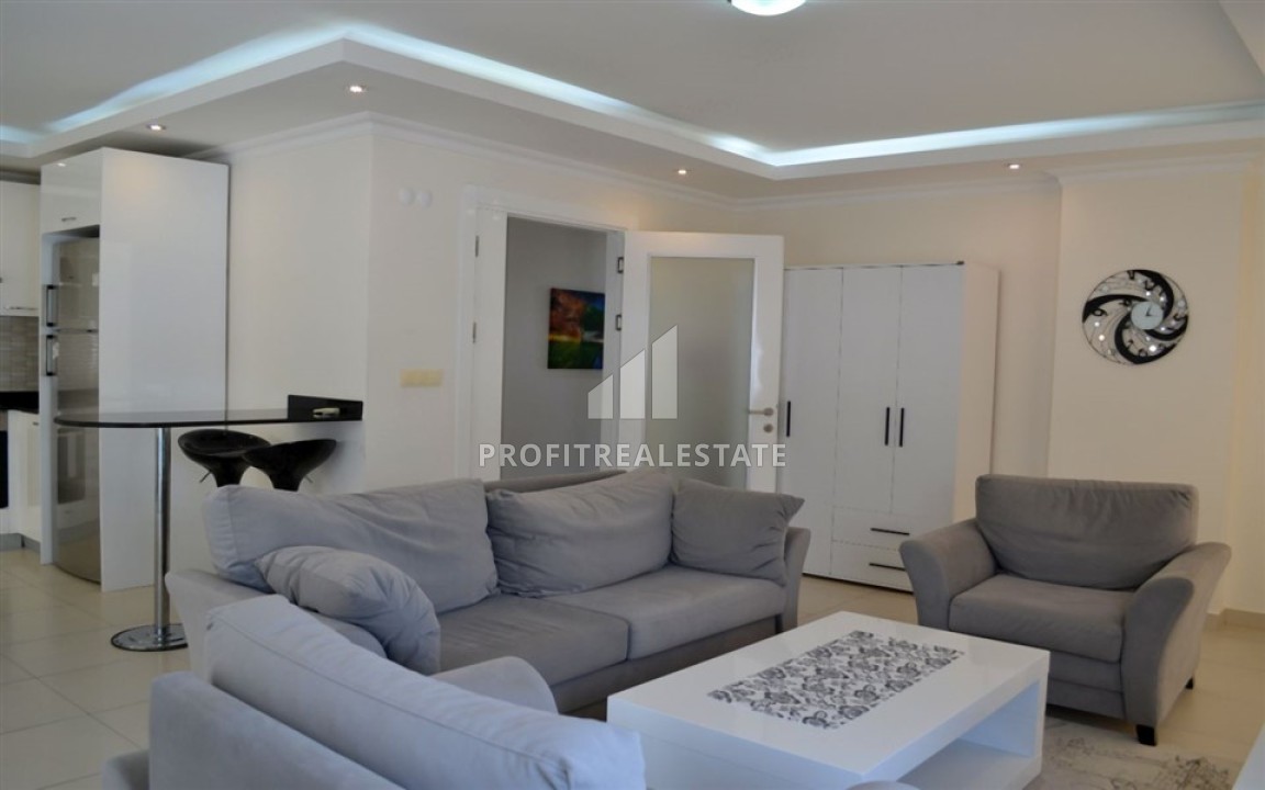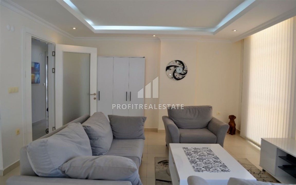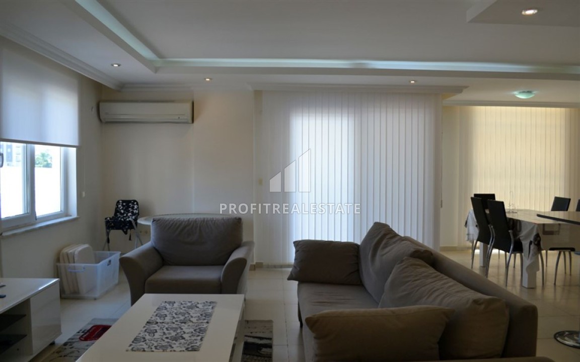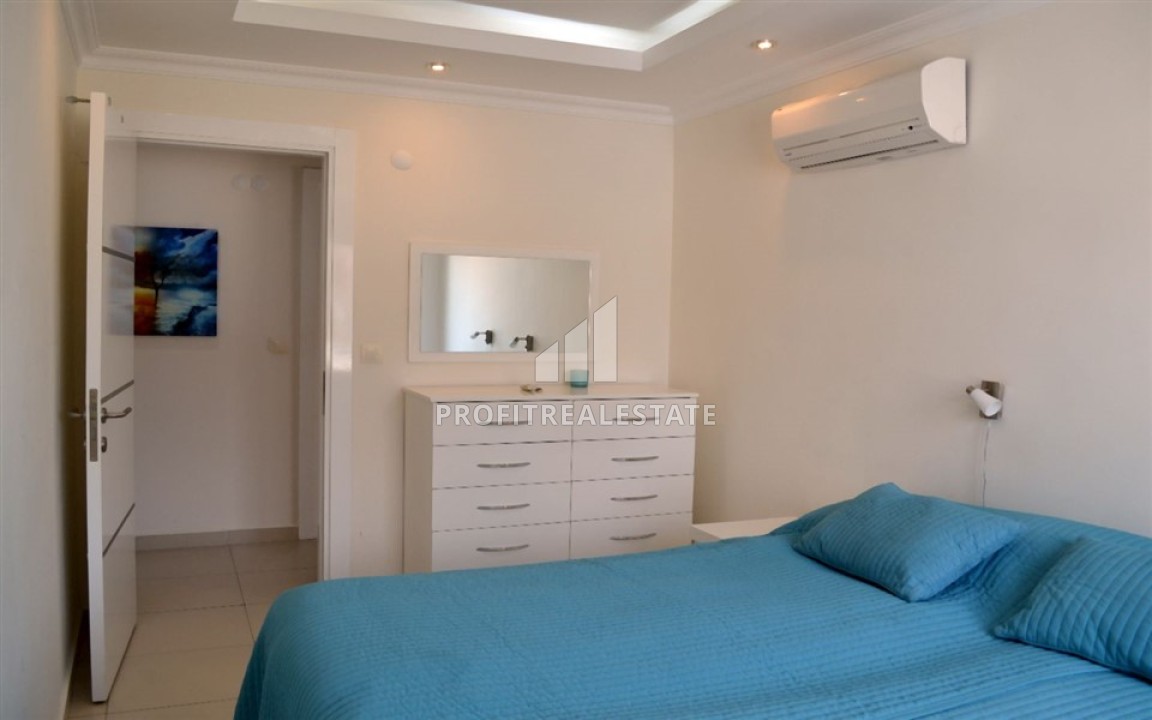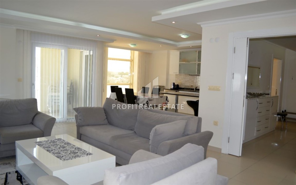 Линейная меблированная квартира с тремя спальнями, 136м², с видом на море, в элитном комплексе в Авсалларе, в 500м от моря