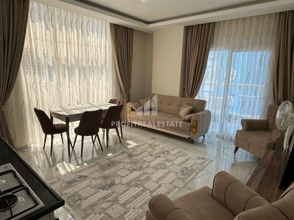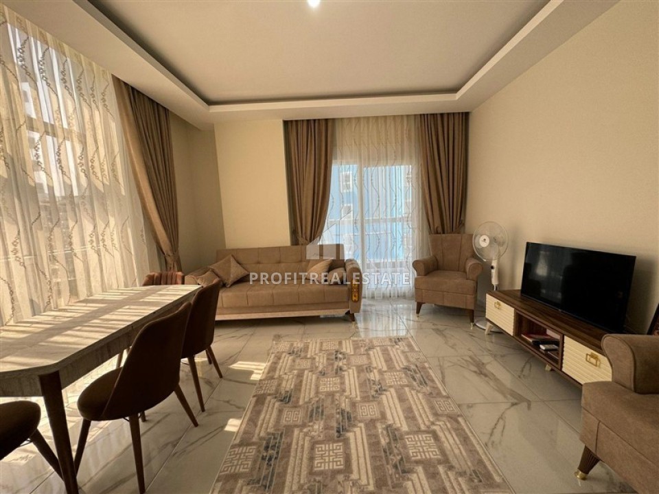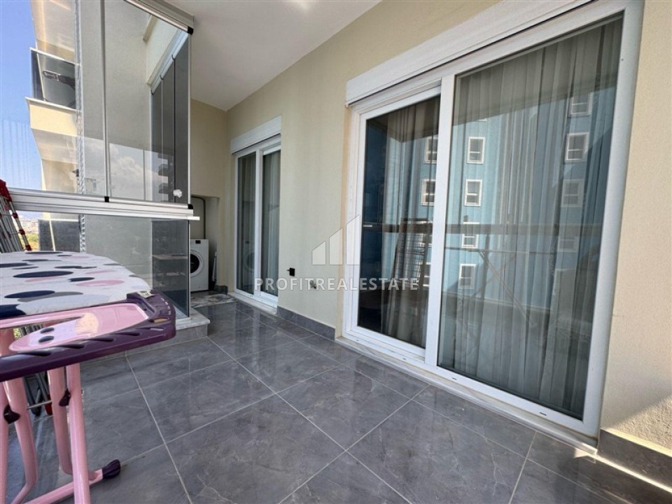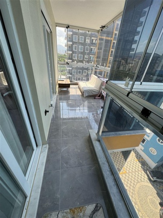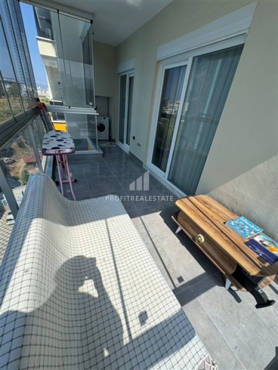 Меблированная двухкомнатная квартира, 65м², с остекленным балконом и видом на горы в в Махмутларе, Алания, 550м от моря