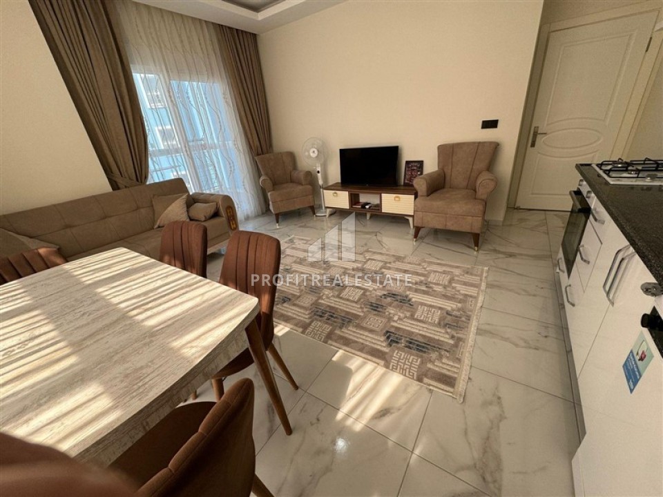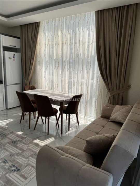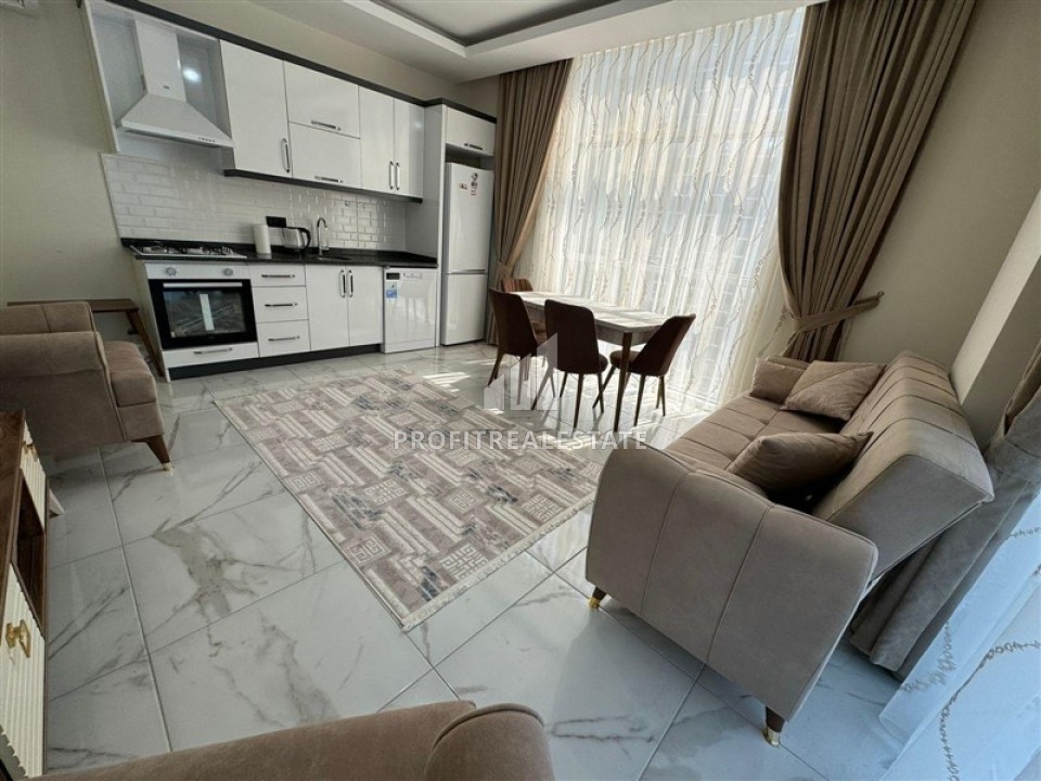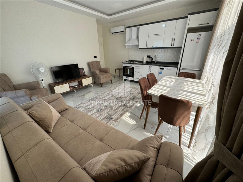 В нашем портфолио появилось хорошее предложение в новом комплексе 2021 года постройки, расположенном в районе Алании - Махмутлар. Апартаменты планировки 1+1 и общей площадью 65м² расположены на 6 этаже. Квартира имеет просторную гостиную, спальню, ванную комнату, с качественным сантехническим оборудованием и один большой балкон с видом на территорию комплекса и горы Торос. Для вашего комфорта, наружные блоки кондиционеров вынесены в отдельное помещение, поэтому, они не будут создавать неудобства. Отличительной особенностью этих апартаментов является наличие прихожей, что является большой редкостью в новых домах. В просторной гостиной разместилась симпатичная мягкая мебель, оборудована обеденная зона на 4 персоны. Открытая угловая кухня оборудована кухонным гарнитуром с гранитной рабочей поверхностью и всей необходимой бытовой техникой. Спальня очень светлая и просторная, с качественной мебелью. Балкон, размером с комнату, остеклен и располагает садовой мебелью. Квартира продается в комплектации, представленной на фото.