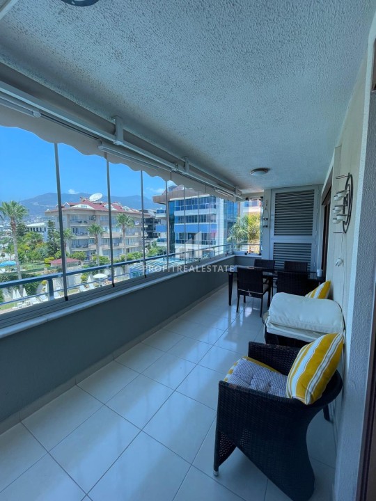 Меблированная квартира 4+1, 220 м2, с джакузи, застеклённым балконом, в комплексе с инфраструктурой в Оба, Аланья