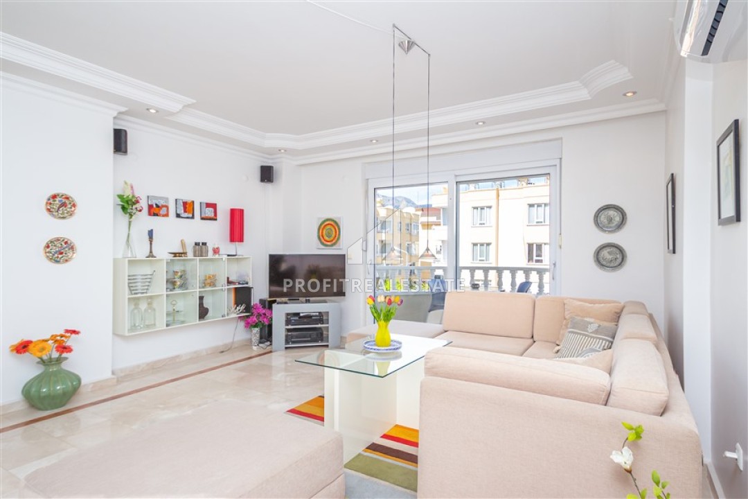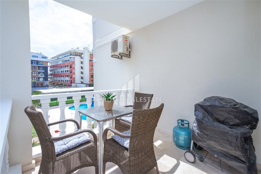 Меблированная квартира с двумя спальнями, 110м², в комплексе с бассейном, в 150м от моря в районе Алании Оба