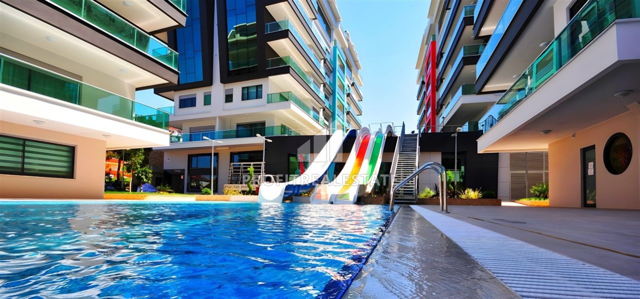 Меблированные апартаменты 1+1, 65м², в элитном комплексе с собственным пляжем в Каргыджаке, Алания