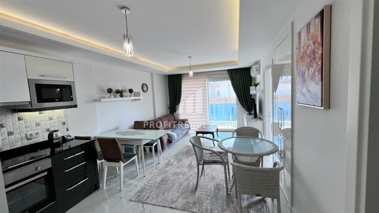 Меблированные двухкомнатные апартаменты, 65м², в комплексе премиум класса в 300м от моря в центре Махмутлара, Алания.