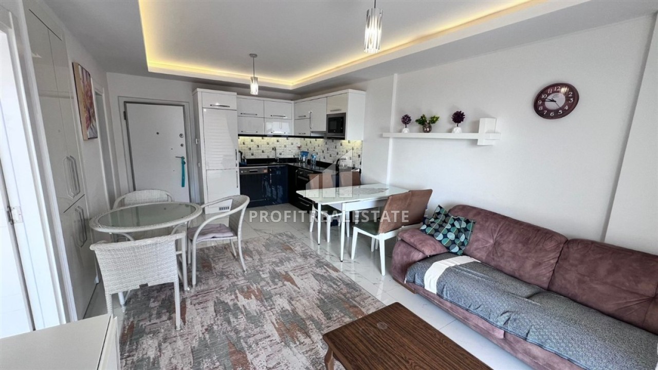 Если вы любите море, цените свое время и мечтаете жить в современном комплексе в центре города, то присмотритесь к нашему предложению. Предлагаем вашему вниманию двухкомнатную квартиру, площадью 65м² в комплексе 2017 года постройки. Квартира имеет: уютную гостиную, объединенную с кухней американского типа со всей необходимой бытовой техникой и местами для хранения посуды, симпатичную обеденную зону на 4 персоны, раскладывающийся диван в зоне отдыха. В спальне установлен необходимый набор мебели. Ванная комната укомплектована местами для хранения косметики и бытовой химии, сантехникой, душевой кабиной, и проточным водонагревателем. На большом балконе разместилась садовая мебель, и вы сможете наслаждаться видом Средиземного моря на горизонте за чашкой крепкого турецкого кофе.