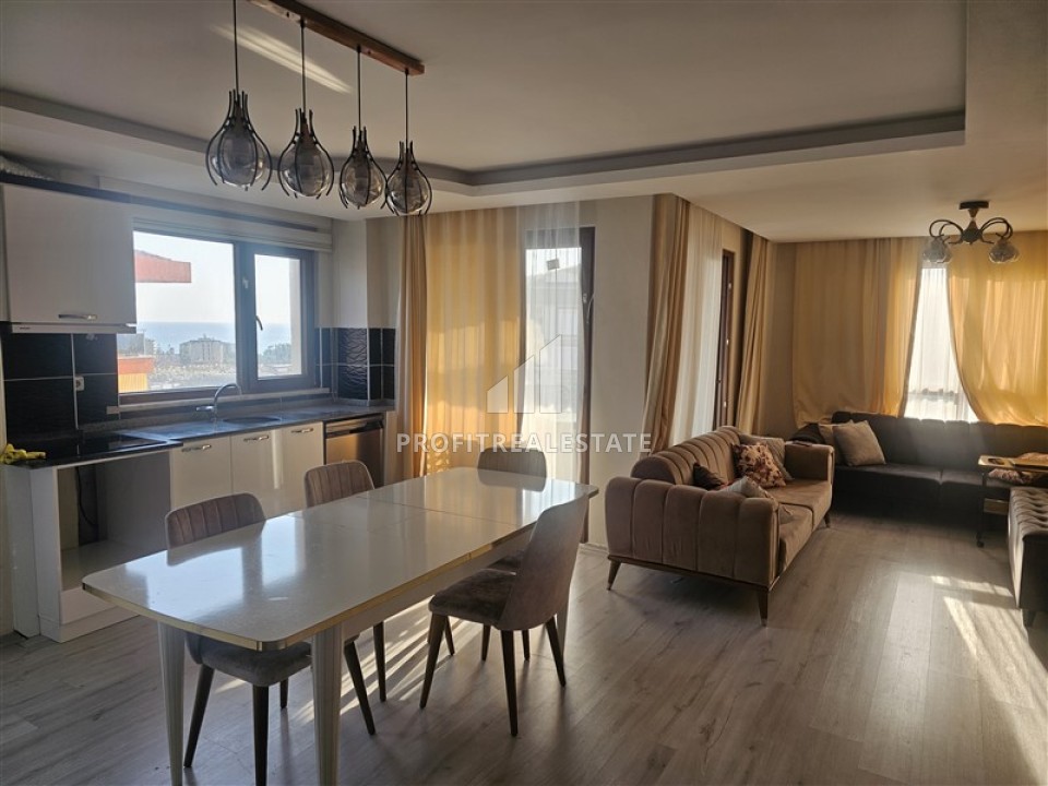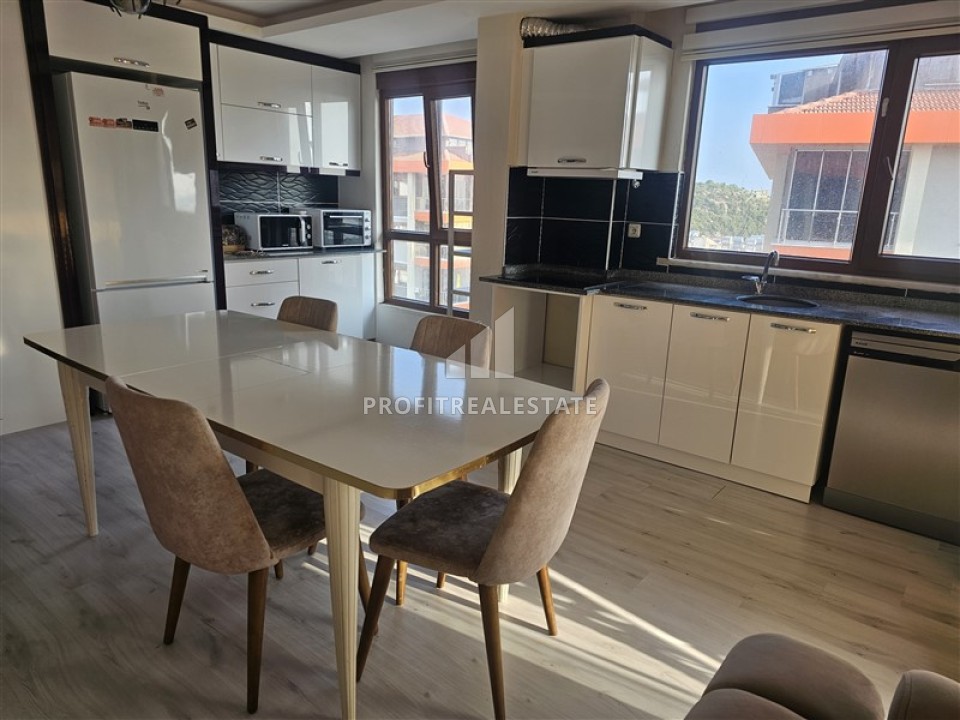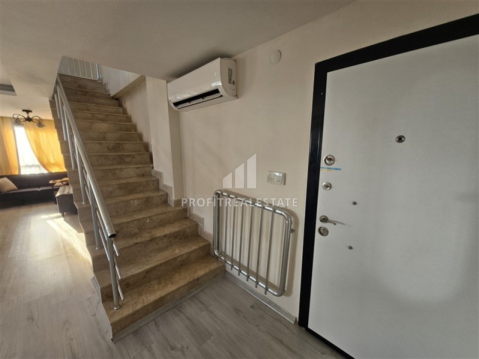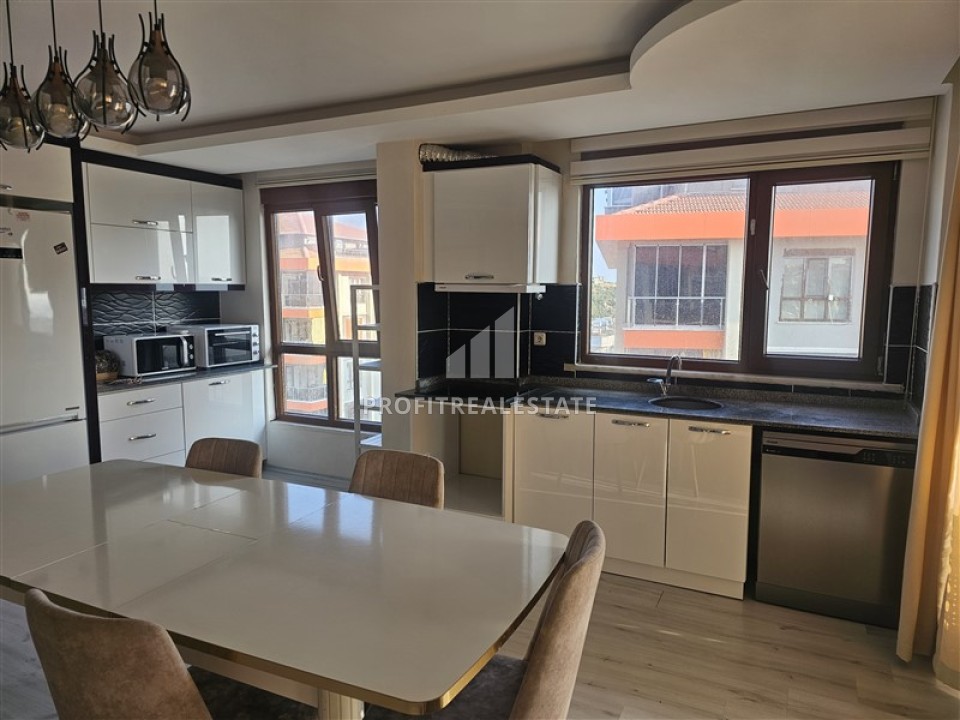 Меблированный четырёхкомнатный пентхаус, 210м², в новом комплексе с бассейном в 500м от моря в Авсалларе, Алания