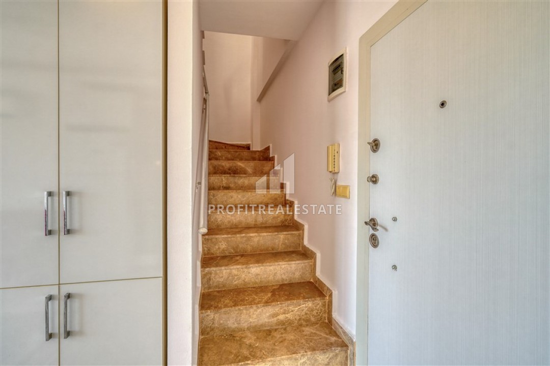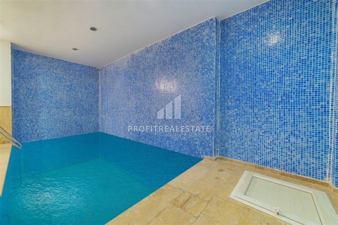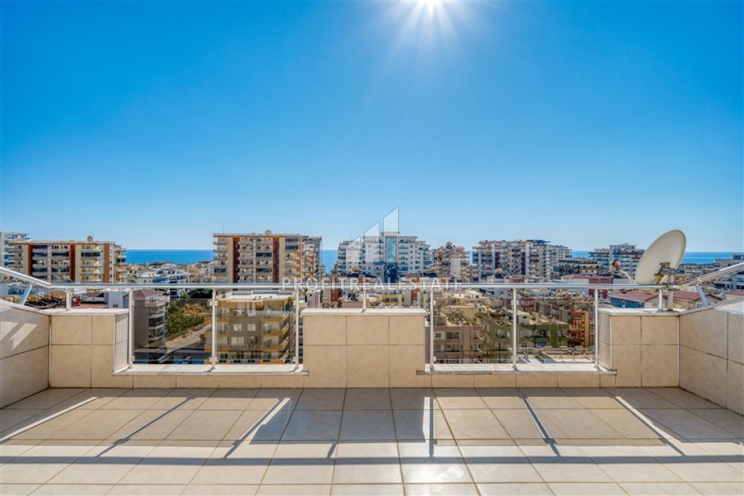 Меблированный пентхаус 2+1, 95м², с видом на море в резиденции с крытым бассейном у рынка в Махмутларе, Алания
