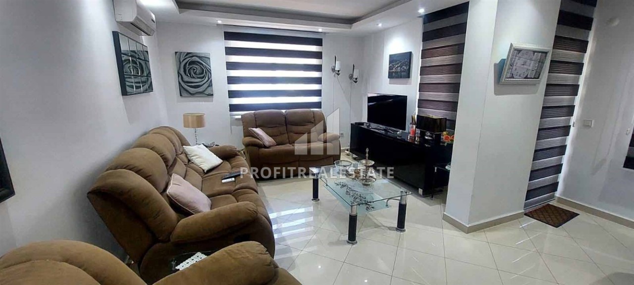 В нашем портфолио появилось отличное предложение от собственника, с которым мы и хотим вас познакомить. Это двухуровневая квартира 3+1, площадью 170м². Апартаменты располагаются на 4-5 этаже, в достаточно современном комплексе 2013 года, с ухоженной территорией и недорогой инфраструктурой. Резиденция находится на закрытой охраняемой территории с небольшим садом, открытым бассейном с детской секцией и зоной для загара. Комплекс расположен на тихой улице, на расстоянии всего 250м от моря, поэтому неторопливая прогулка к морскому побережью займет не более 5 минут. Также можно прогуляться до центра района, где расположены все объекты городской инфраструктуры: сетевые магазины, овощные и мясные лавки, кафе и рестораны, отделения банков и банкоматы. Рядом с резиденцией находится уютный парк с комфортабельной детской площадкой. В пешей доступности - гипермаркет Метро, новая большая государственная больница, множество уютных кафе и ресторанов, аптеки, сетевые магазины.
