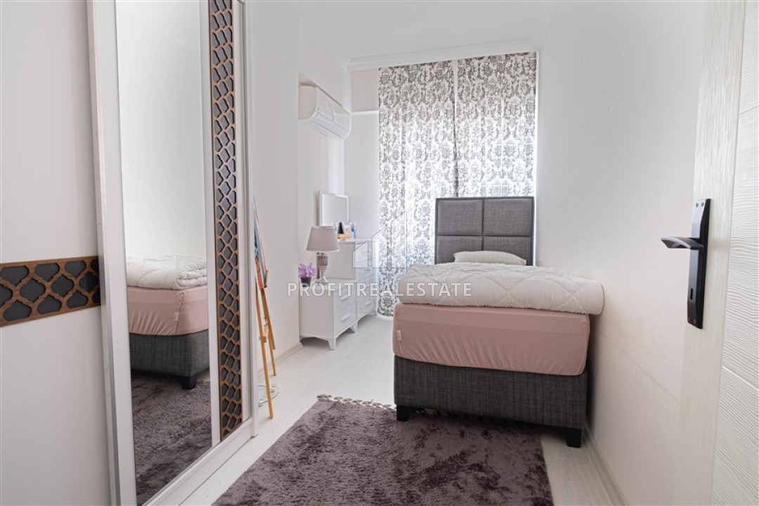 Хотите приобрести недорогую квартиру на берегу моря? Тогда не упустите, по-настоящему, выгодное предложение - апартаменты по доступной цене и полностью готовые к проживанию. Продается квартира с двумя спальнями, площадью 100м², расположенная на 2 этаже в комплексе 2005 года постройки. В планировку 2+1 входит: уютная гостиная с набором мягкой мебели, совмещенная с кухней открытого типа, которая несколько отделена от зоны отдыха, две меблированные спальни, прихожая с местом для шкафа для верхней одежды и обуви, две ванных комнаты, оборудованные всей необходимой сантехникой и один балкон. Апартаменты находятся в хорошем состоянии, после ремонта, с новым интерьером. В стоимость входит: мебель, бытовая техника, кондиционеры, как на представленных фото.