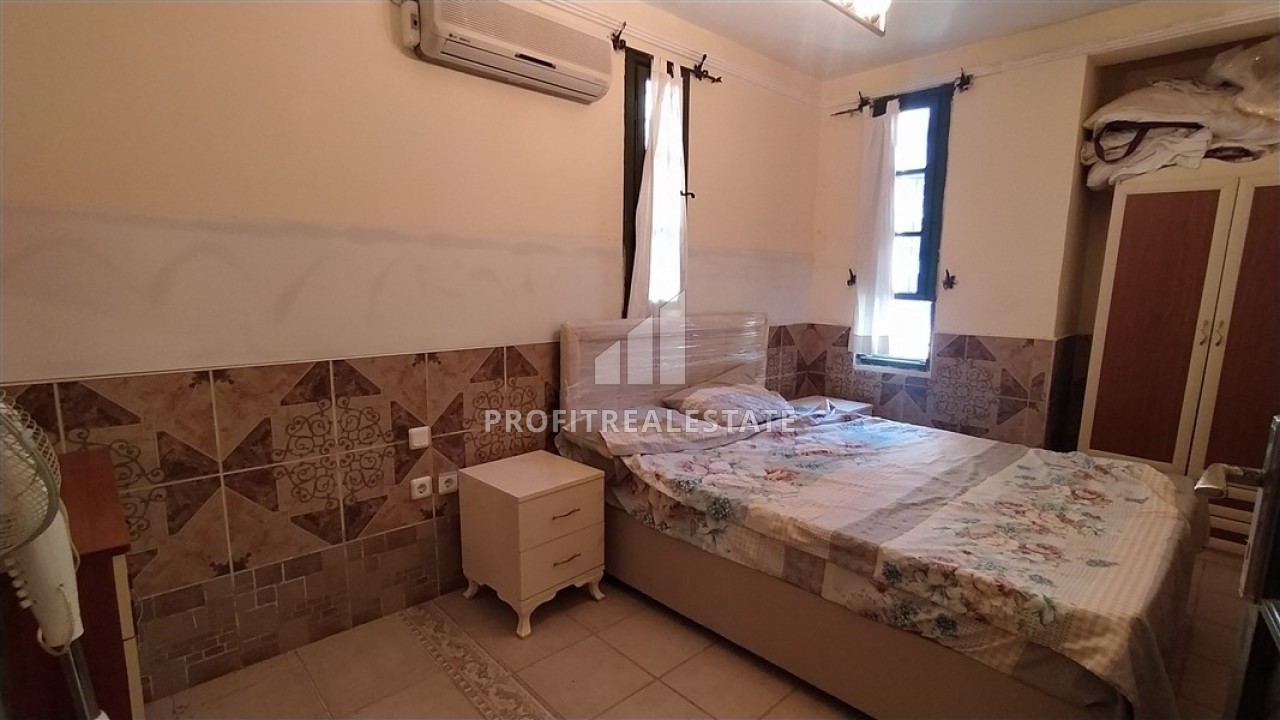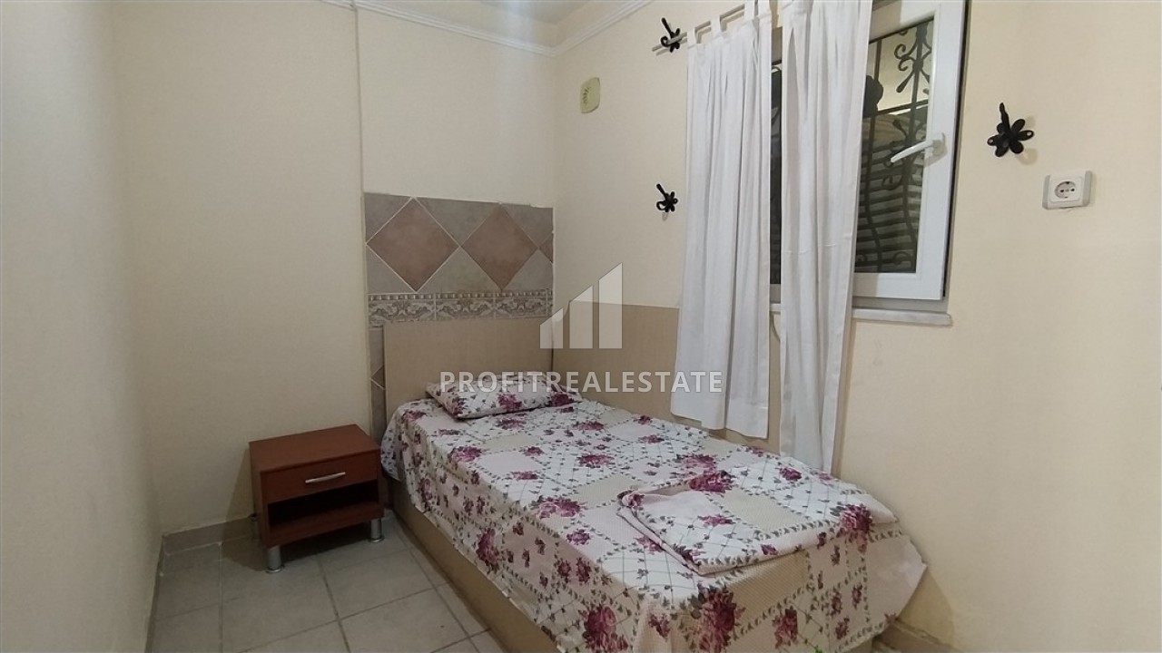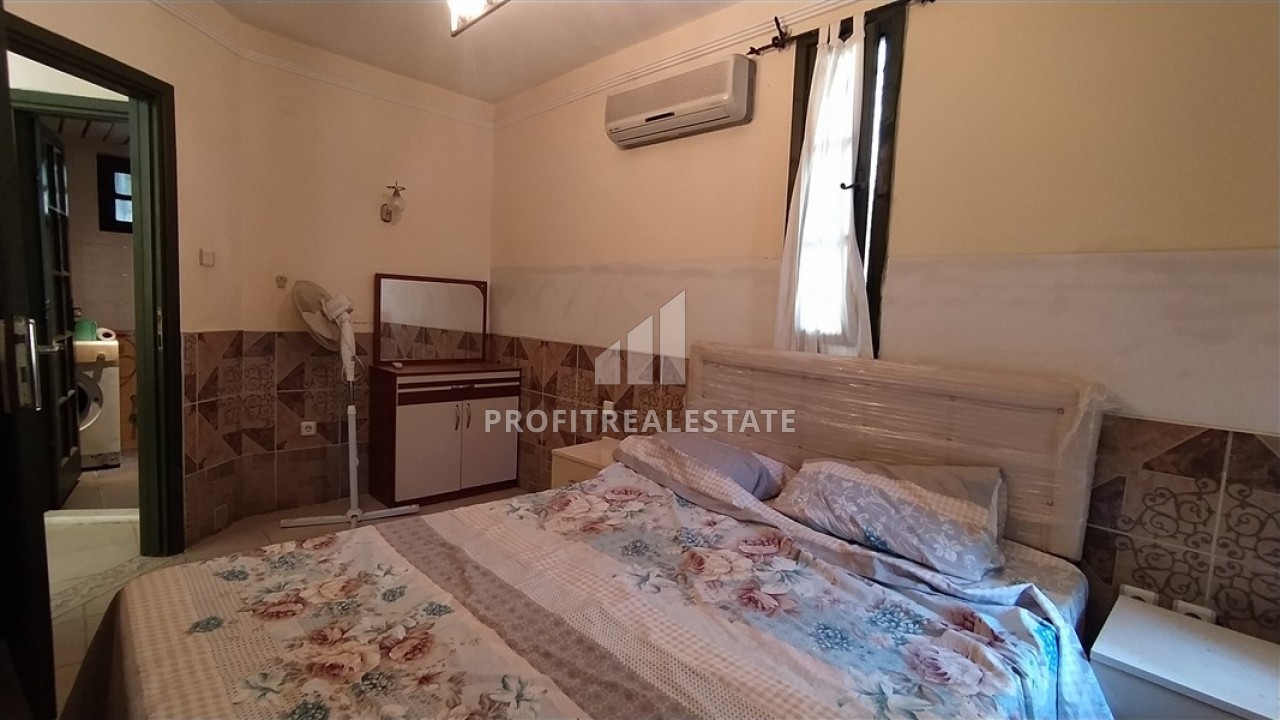 Что касается апартаментов, они занимают первый этаж и, при планировке 2+1, включают в себя две спальные комнаты, салон, совмещенный с кухней открытого типа, ванную комнату с душевой кабинкой, и балкон с прямым выходом в зеленый сад, а также, к бассейну. При этом, квартира укомплектована всей необходимой мебелью и бытовой техникой, которые уже входят в заявленную стоимость. Данное предложение станет идеальным для тех, кто ищет квартиру для отдыха или же, сдачи в аренду, и, при этом, не требующую больших денежных затрат.