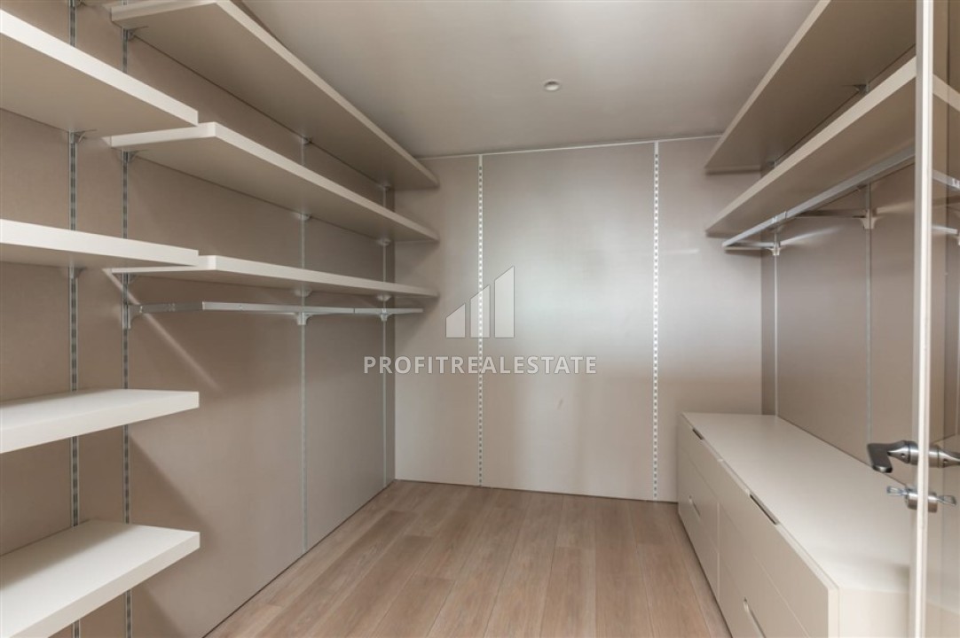 Общая площадь виллы составляет 510 м2, а планировка 6+1 включает в себя два этажа плюс жилую мансарду, на которых расположились 6 спален, гостиная с камином, кухня, гардеробная, санузлы, балконы и солнечная терраса на крыше. В каждой вилле установлен лифт и система «Умный дом». Кроме того, здесь есть сауна, хамам. Добавим, что в заявленную стоимость также входит чистовая отделка из материалов высочайшего качества, напольное отопление, корпусная кухонная мебель, встроенная бытовая техника, кондиционеры.