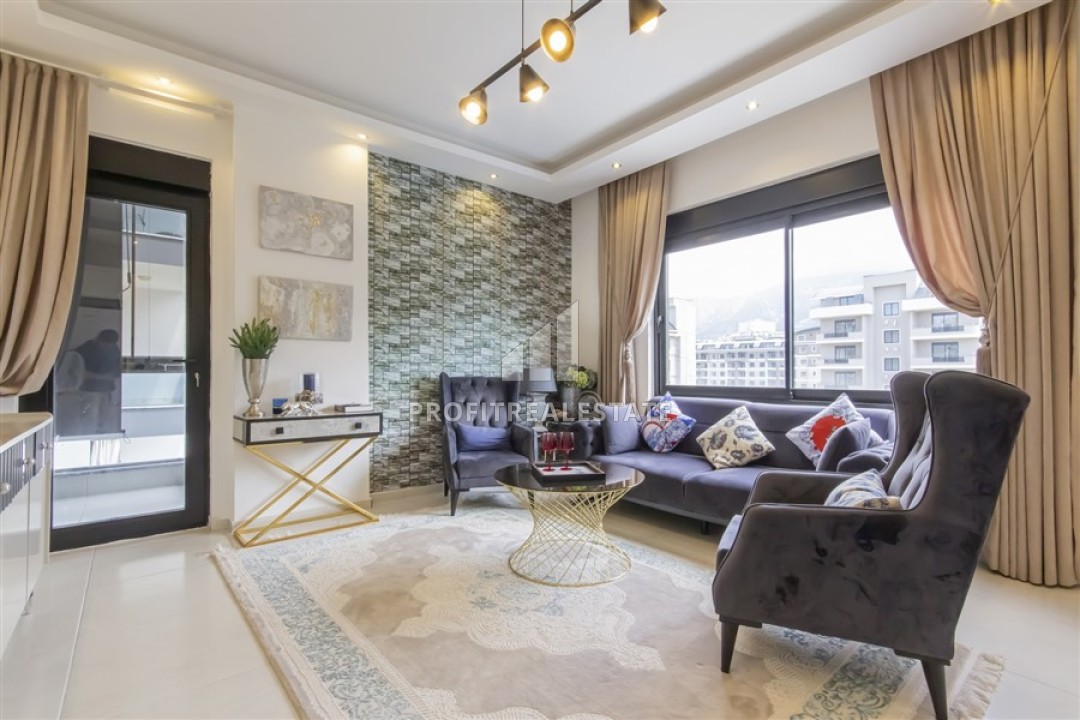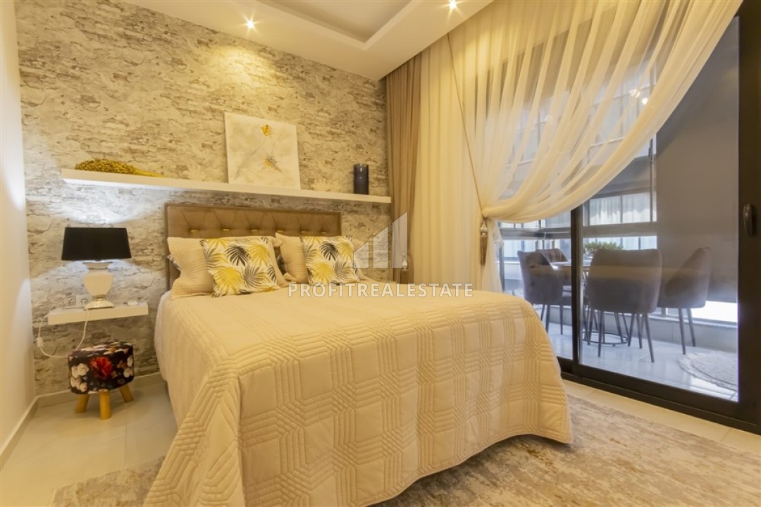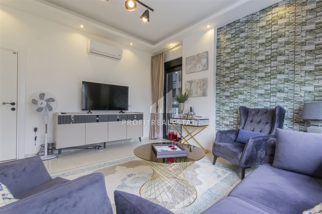Новые двухкомнатные апартаменты, 55м², с дизайнерским интерьером, в 150м от моря в районе Каргыджак, Алания