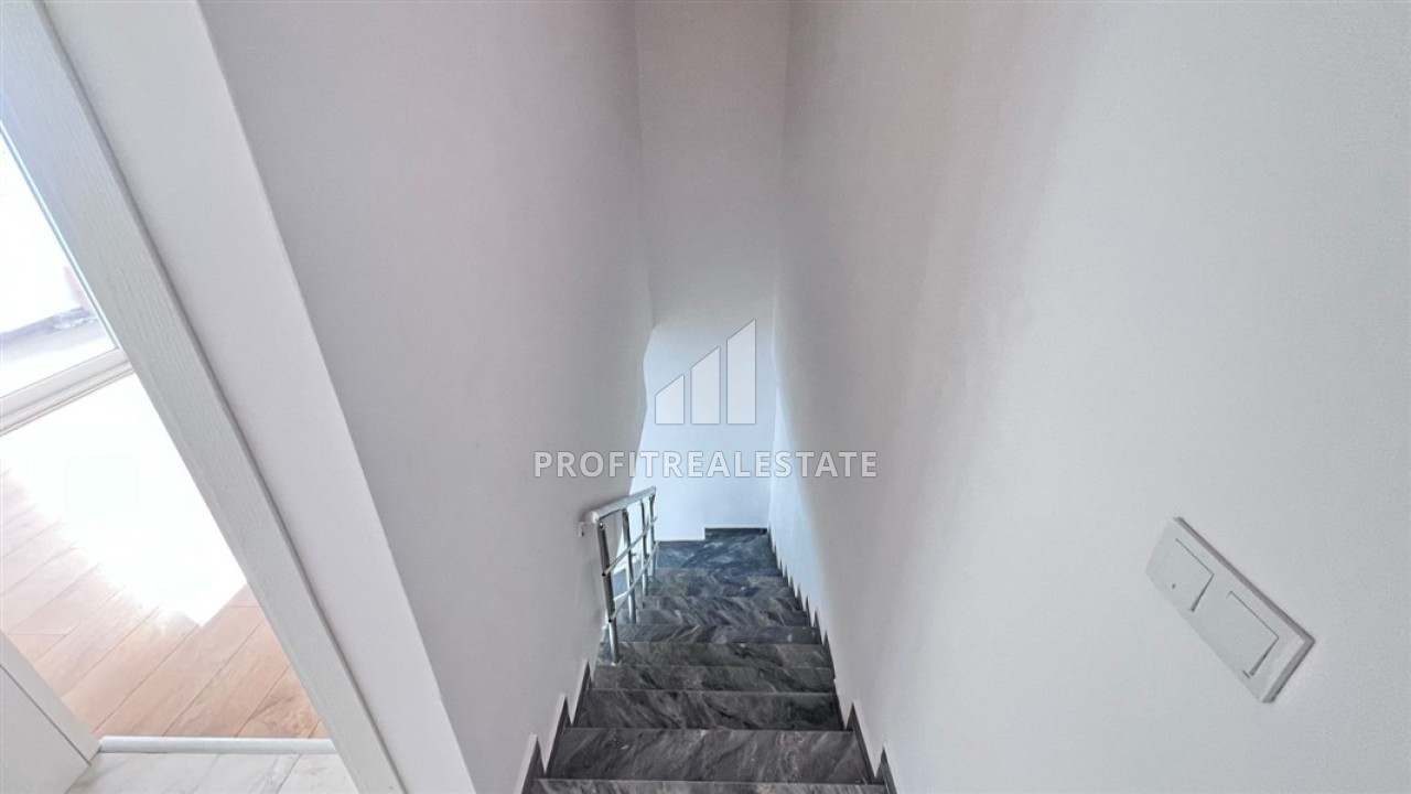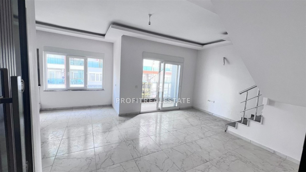 Продается новая двухуровневая квартира, планировки 2+1, площадью 80м², расположенная на 5-6 этажах жилого комплекса в районе Алании - Махмутлар. Комплекс, 2025 года постройки, расположился в 400 метрах от песчаных пляжей и на расстоянии 100м от центра района, на одной из центральных улиц. До фермерского рынка по вторникам – два шага, до нового торгового центра, парков и детских площадок – несколько минут неспешной прогулки. В окружении резиденции есть вся городская инфраструктура: кафе и рестораны, магазины и сувенирные лавки, аптеки, салоны красоты, спортивные комплексы и остановки общественного транспорта. Первые два этажа комплекса используются в коммерческих целях.