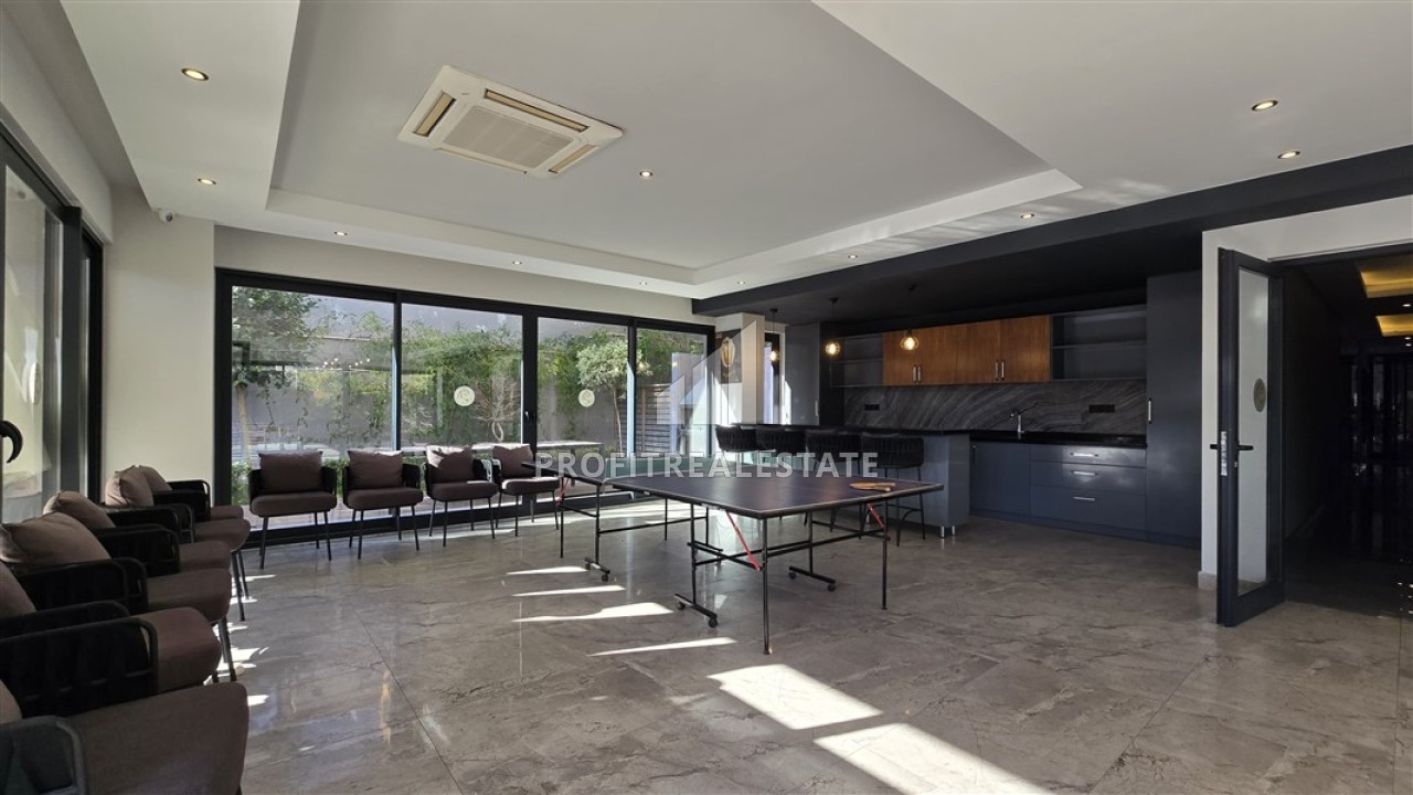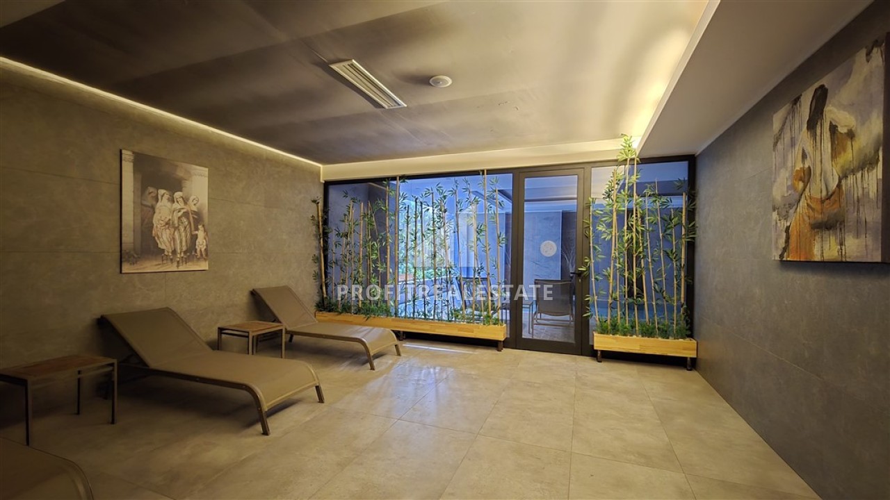 Жилой комплекс, в котором находятся апартаменты, был построен в 2020 году и располагается всего в 400 м от пляжа. На территории - развитая инфраструктура для комфортного проживания или выгодной сдачи в аренду: открытый и крытый бассейны, фитнес-зал, сауна, хаммам, генератор для бесперебойной подачи электроэнергии. До центра Алании со всеми социальными объектами, необходимыми для комфортной жизни - 200 метров.