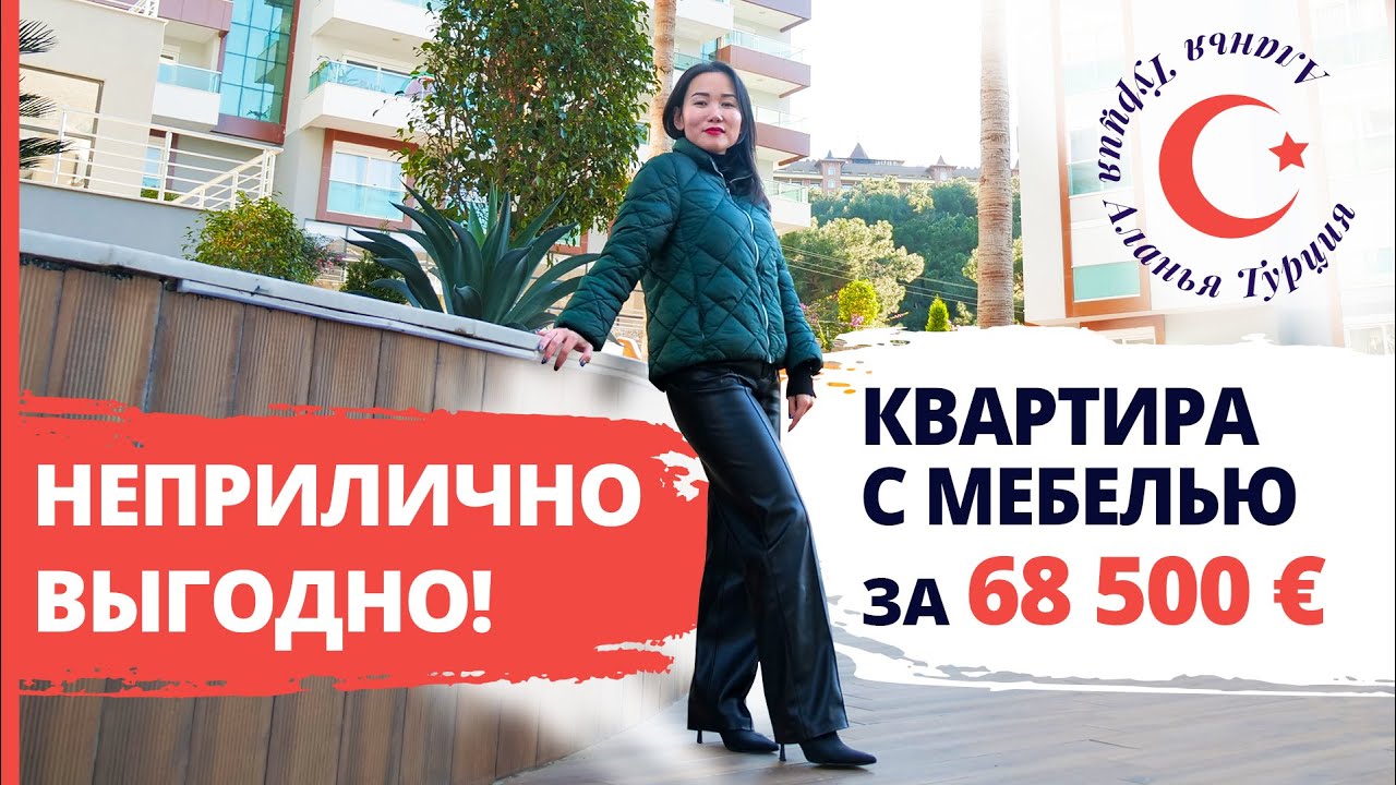 Стильная двухкомнатная квартира в 450 метрах от моря, Каргыджак, Аланья, 65 м2